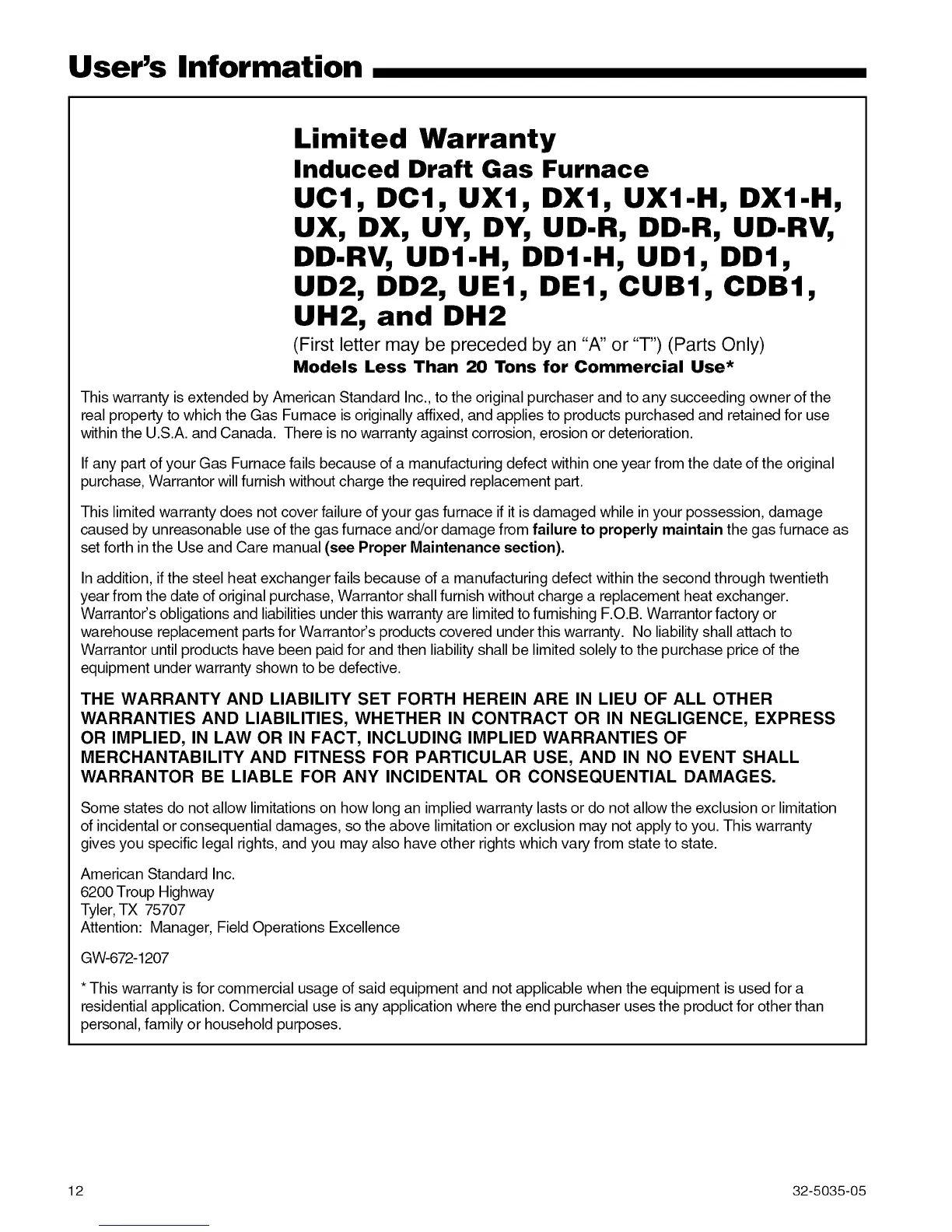 This limited warranty does not cover failure of your gas furnace if it is damaged while in your possession, damage