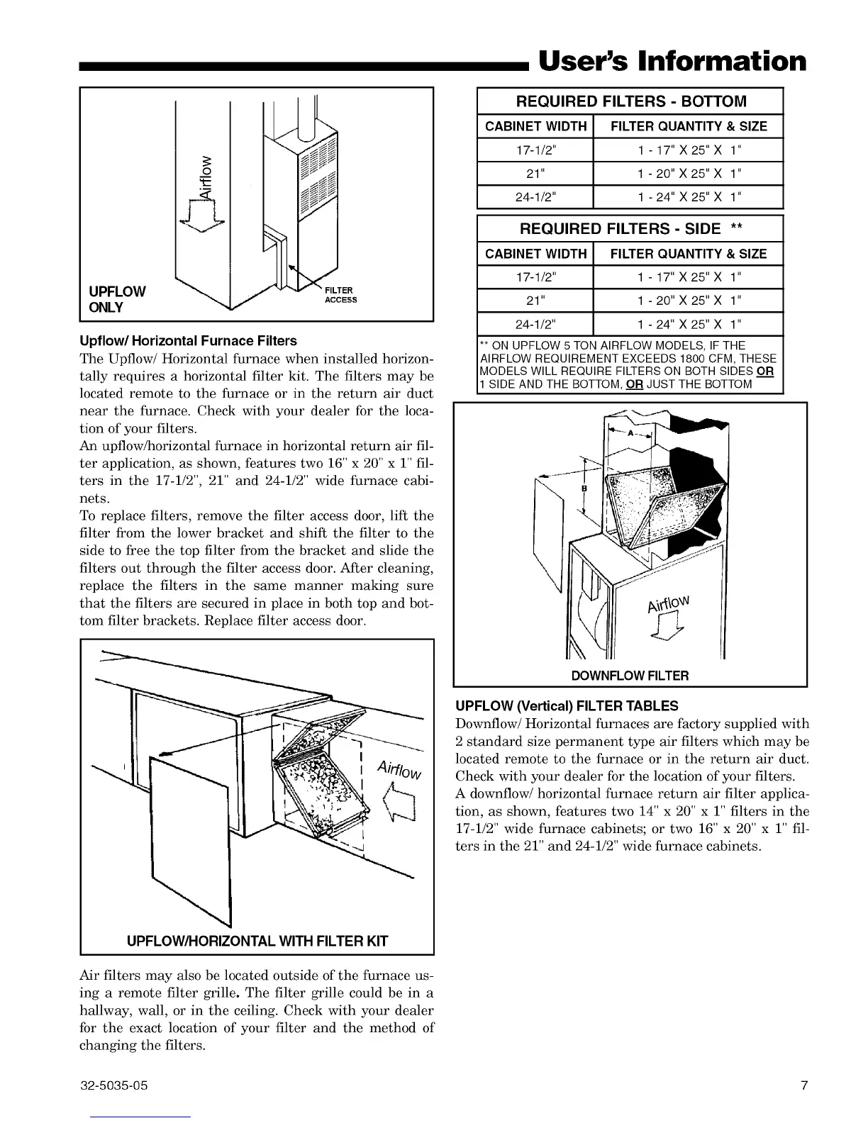 UPFLOW/HORIZONTAL WITH FILTER KIT