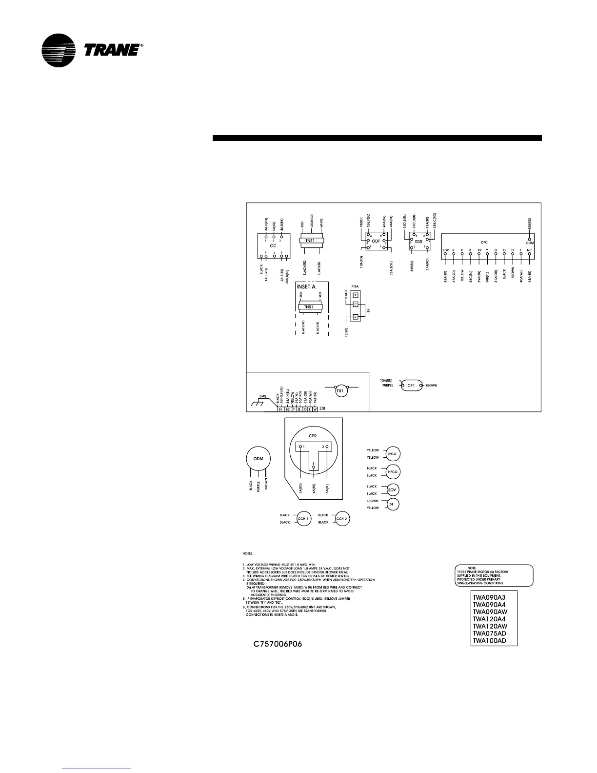 Trane TWA075A - Typical Wiring - Single Compressor Heat Pump