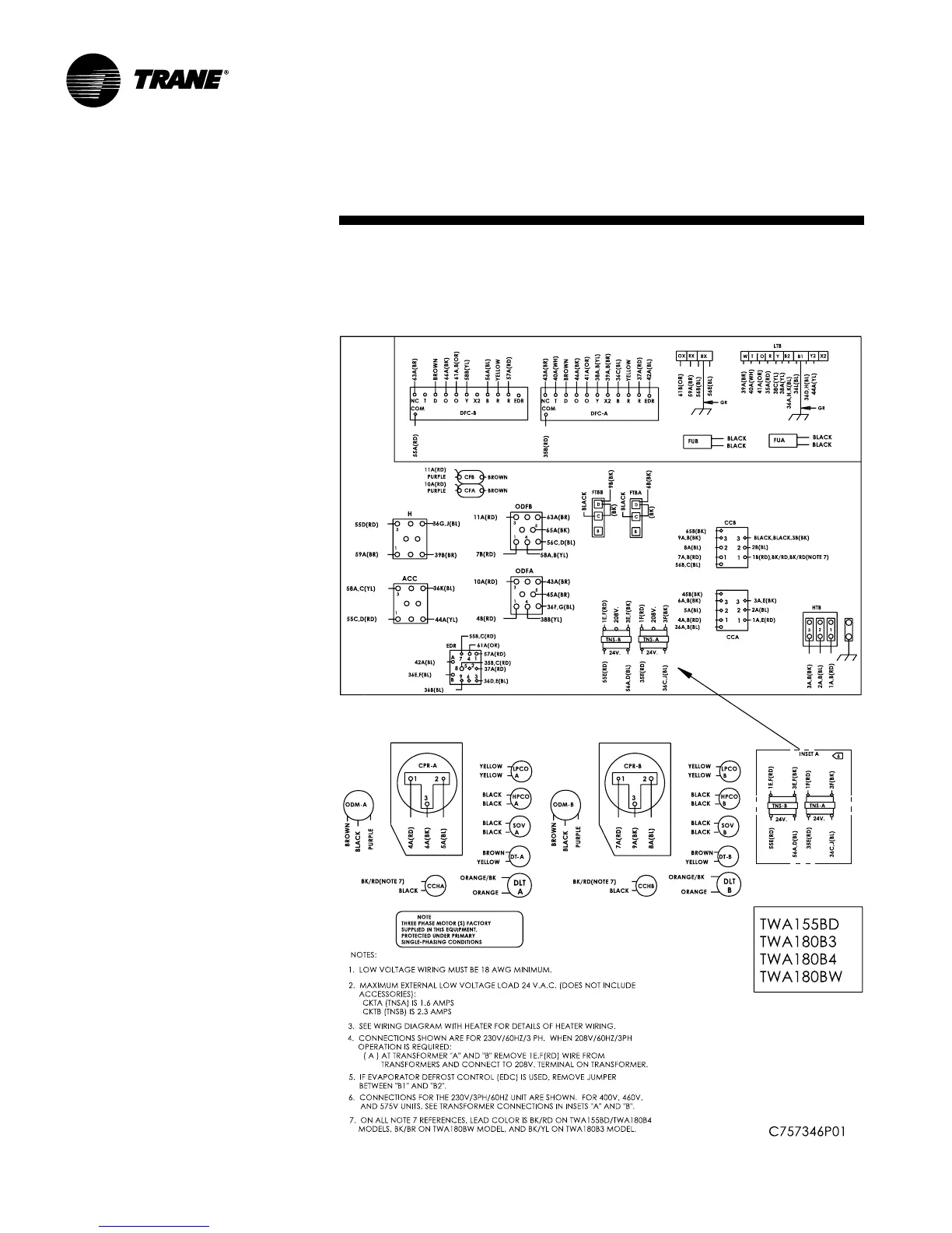 Trane TWA075A - Typical Wiring - Dual Compressor Heat Pump