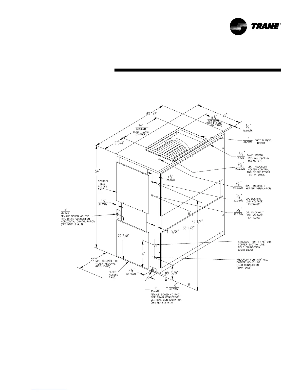 configuration. Plastic drain pan access plate on the end of unit