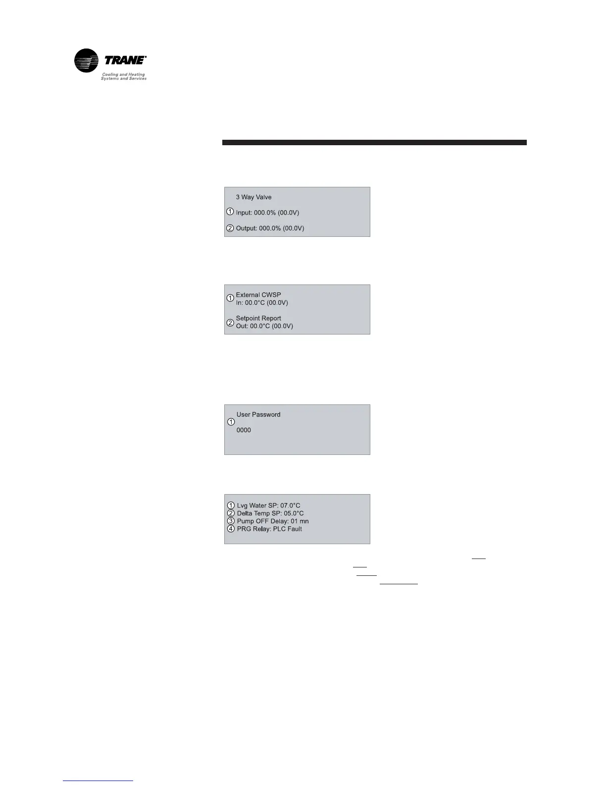 1 = Leaving Water Temp SP (-17.8°C (or LAW+2.8°C)..15°C (or HCWSP): 7°C)