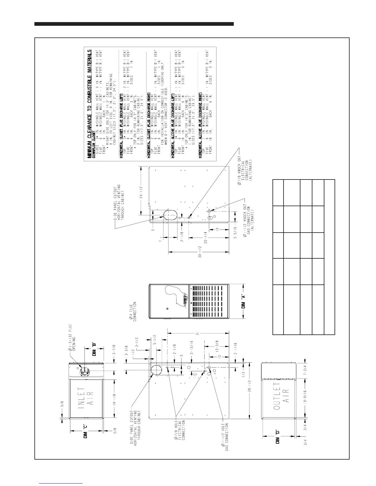 MODEL DIM "A" DIM "B" DIM "C" DIM "D"