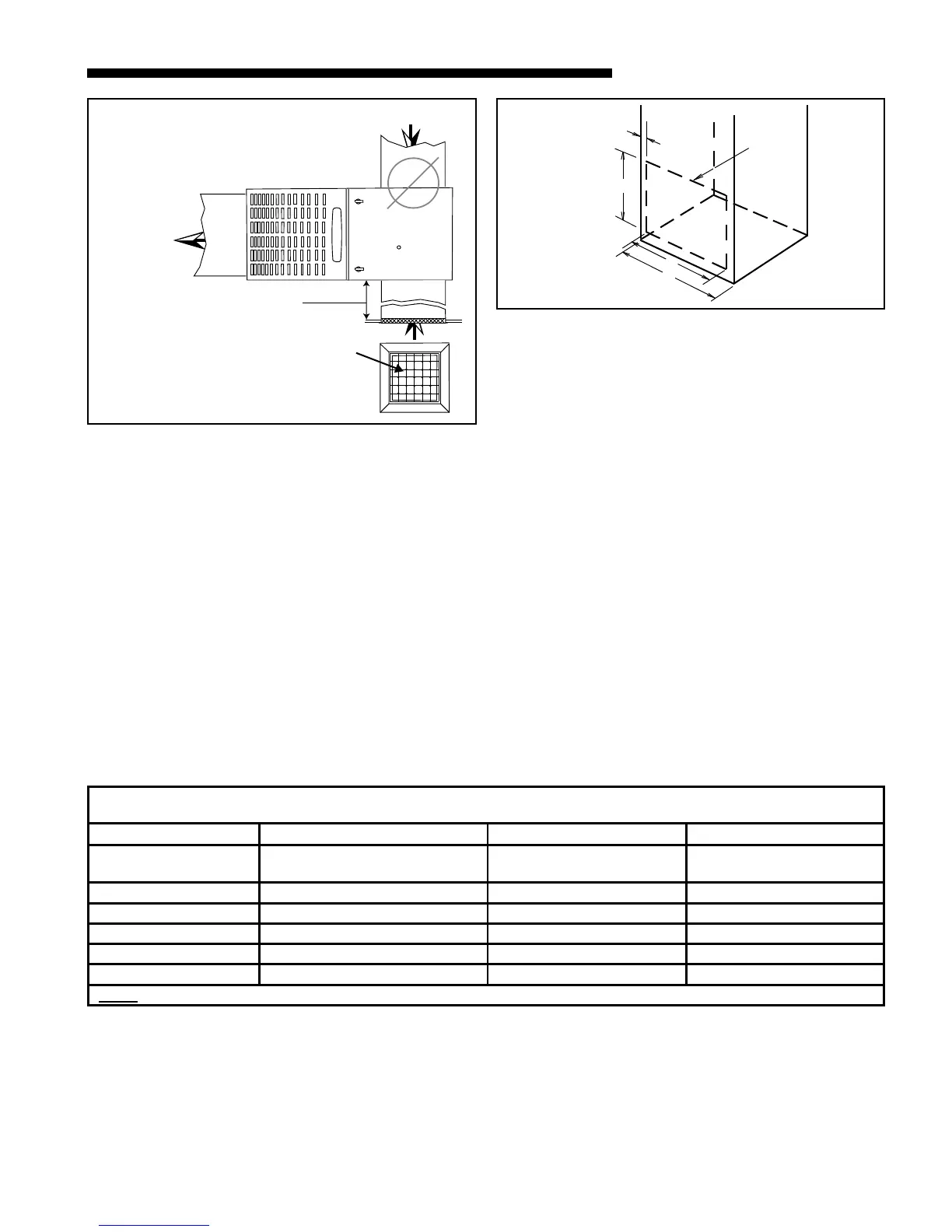 : CLEARANCE REQUIRED AT TOP OF PLENUM IS 1"
