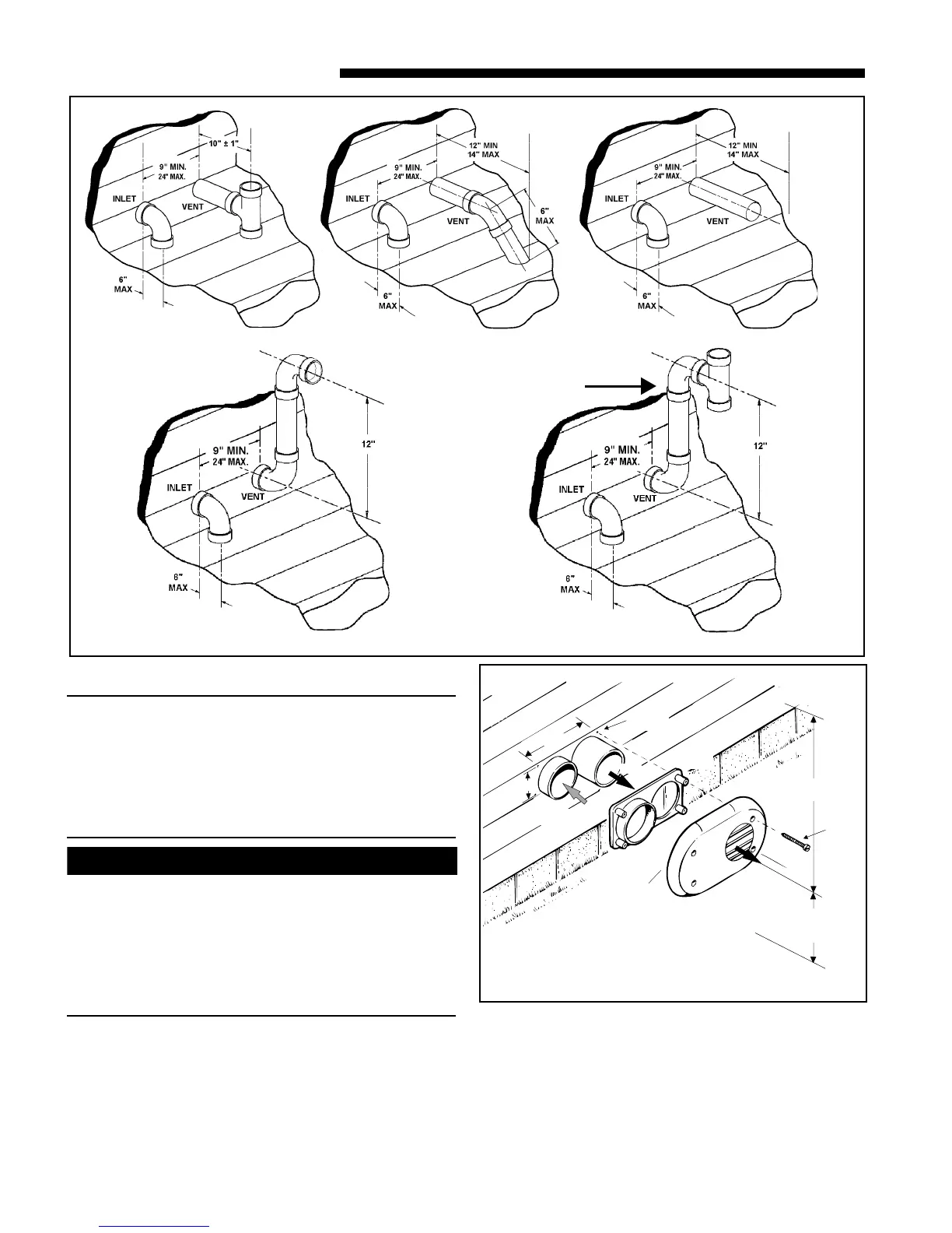 The vent & inlet terminals must be located at least 12"