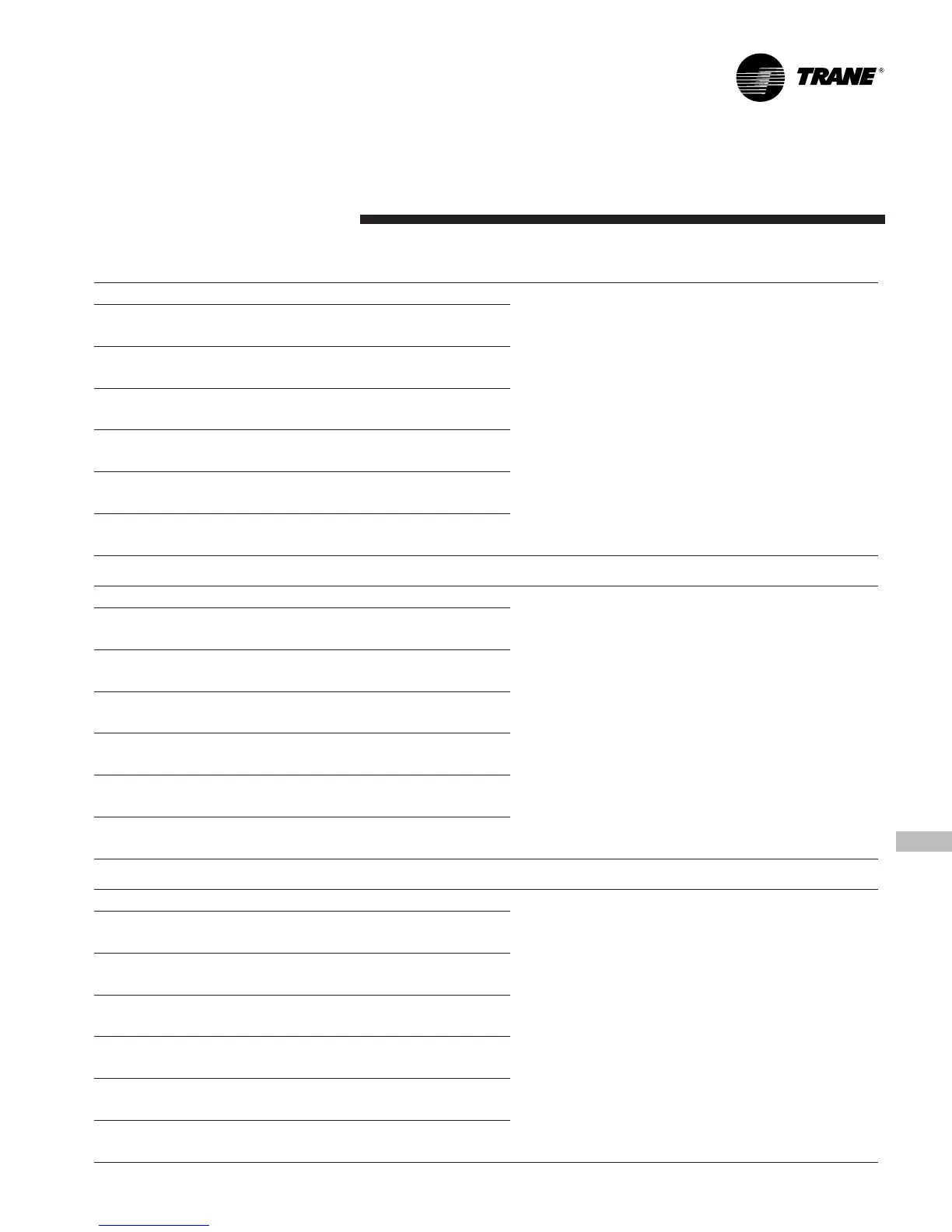 Trane WCC030 - Cooling Performance Data - Metric; WCC030 FD00 B Cooling Specs (Metric); WCC040 FD00 B Cooling Specs (Metric); WCC050 FD00 B Cooling Specs (Metric)