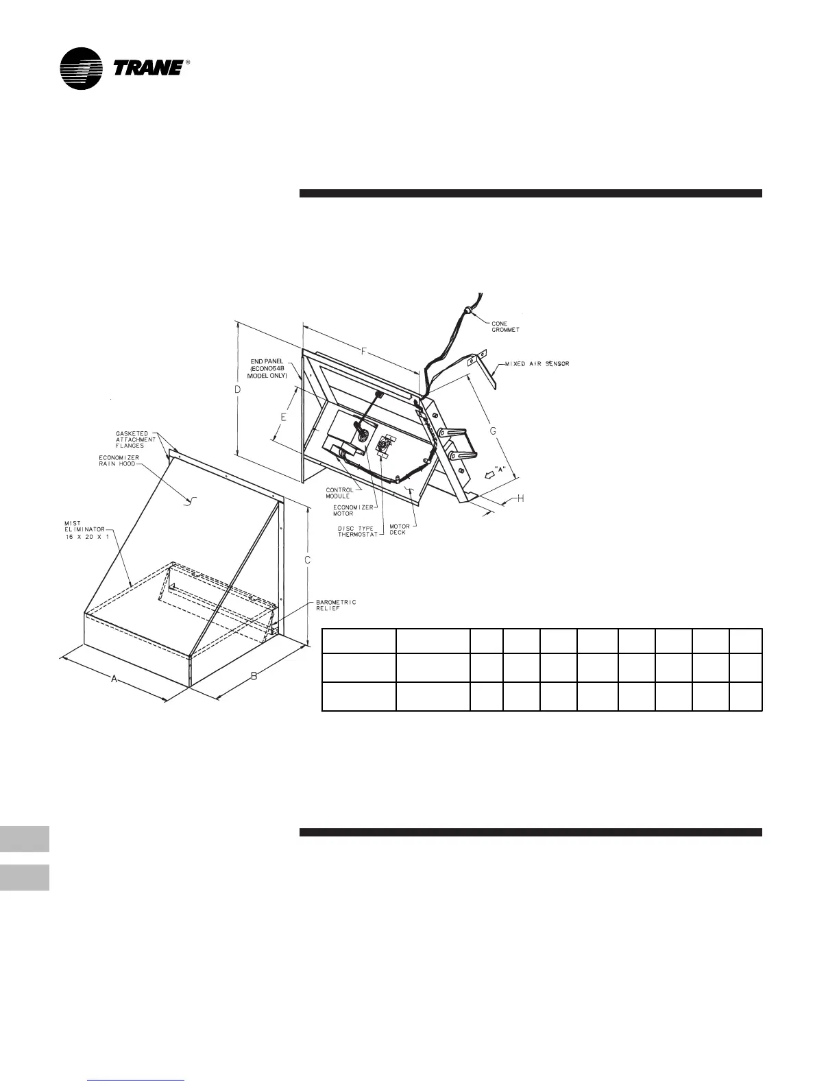 Trane WCC040 - Optional Equipment and Controls; Economizer and Rain Hood Applications; Thermostat and Control System Options; Economizer Control Types Explained