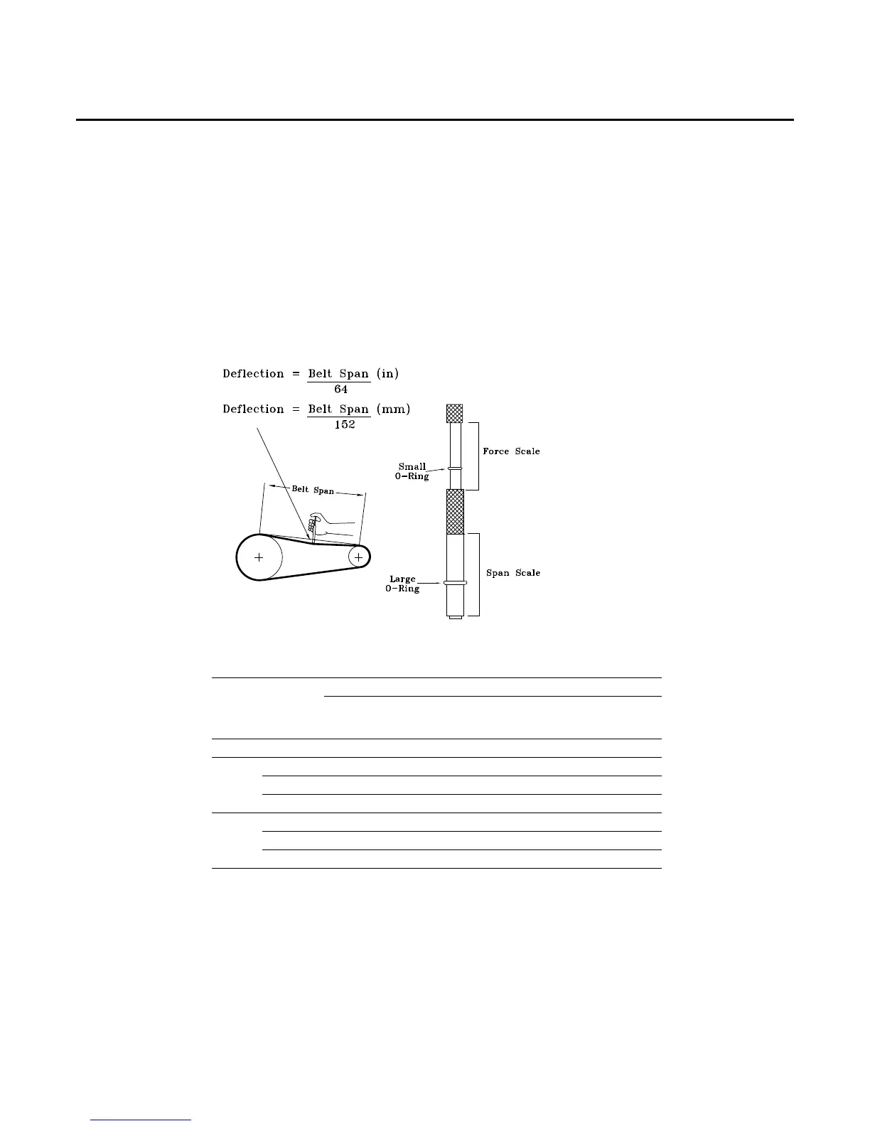 Note: Actual belt deflection “force” must not exceed the maximum “force” value shown in