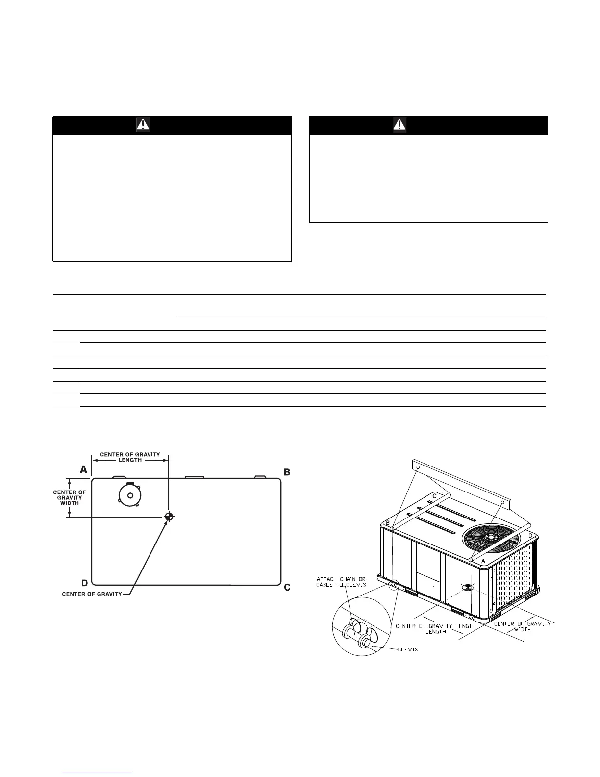 Table 1. Maximum unit & corner weights (lbs) and center of gravity dimensions (in.)