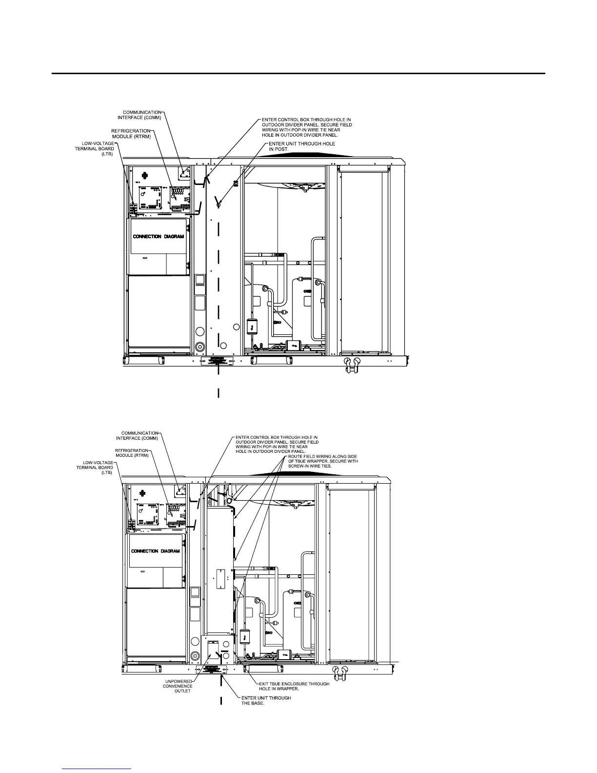 Figure 39. ReliaTel™ (with TBUE) control customer wire routing (10 ton)