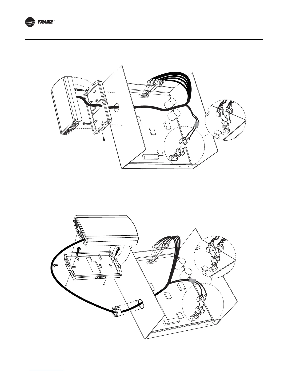 Figure 3. Wiring a receiver to a unit controller through the opening in the back of the receiver back plate