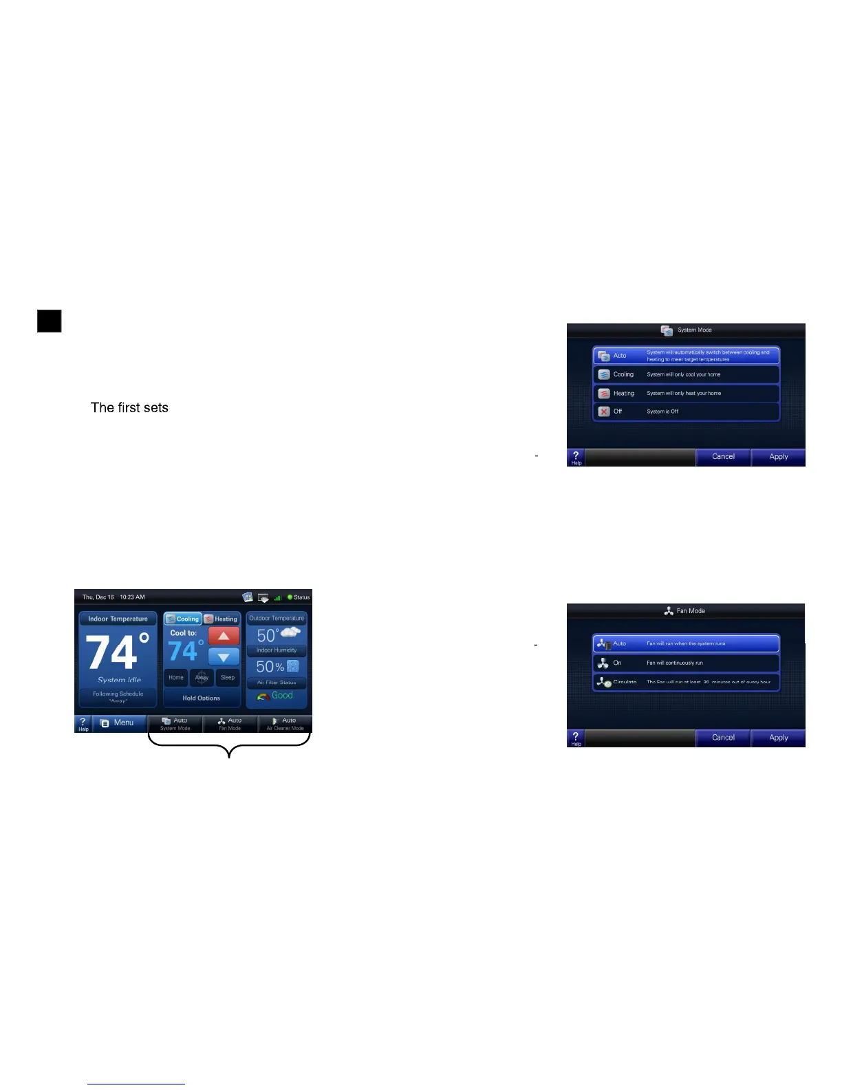 Trane XL950 - System and Mode Selection; System Mode Options; Fan Mode Options