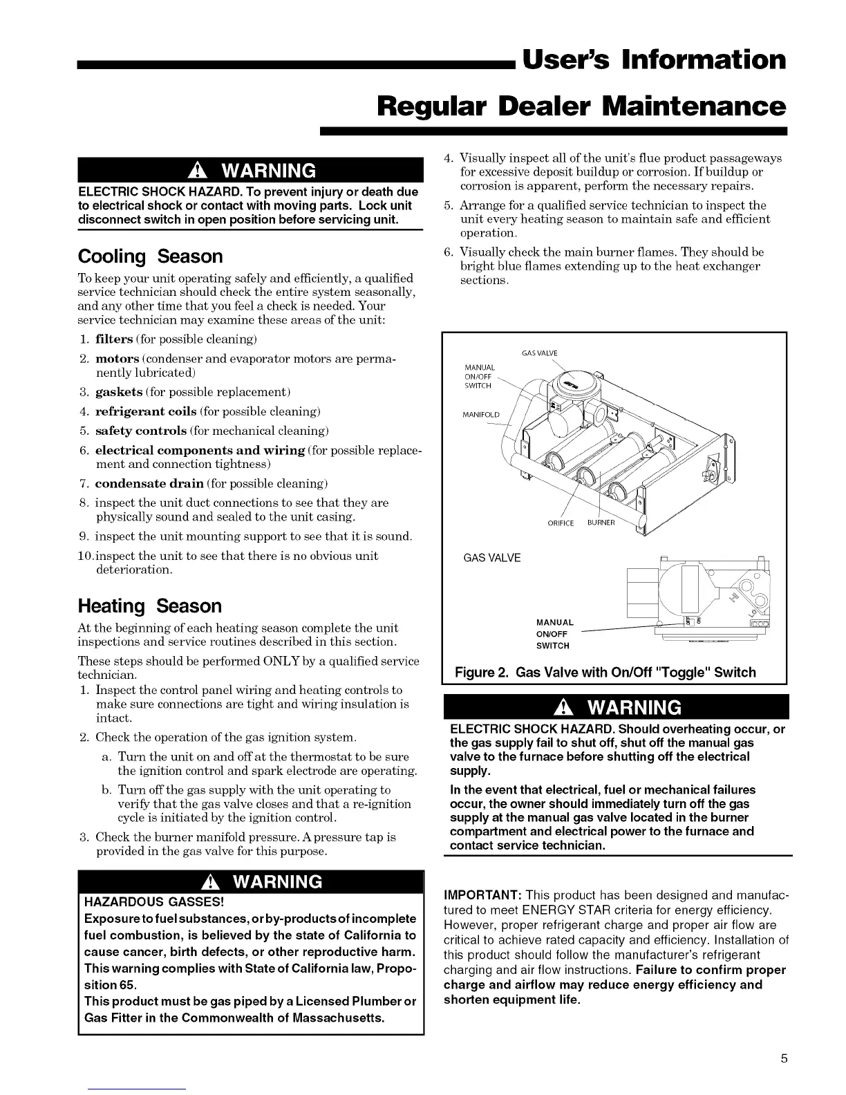 unit every heating season to maintain safe and efficient