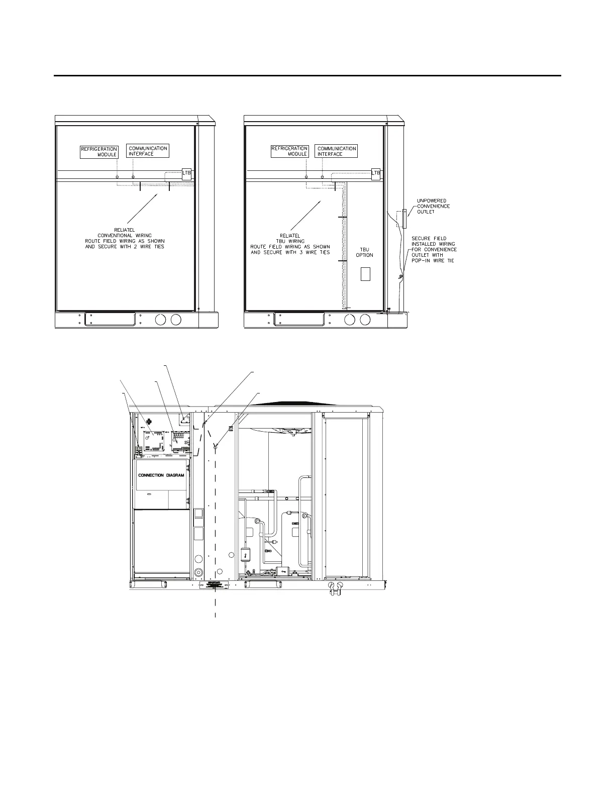 Figure 67. ReliaTel™ (without TBUE) control customer wire routing (10 ton high efficiency)