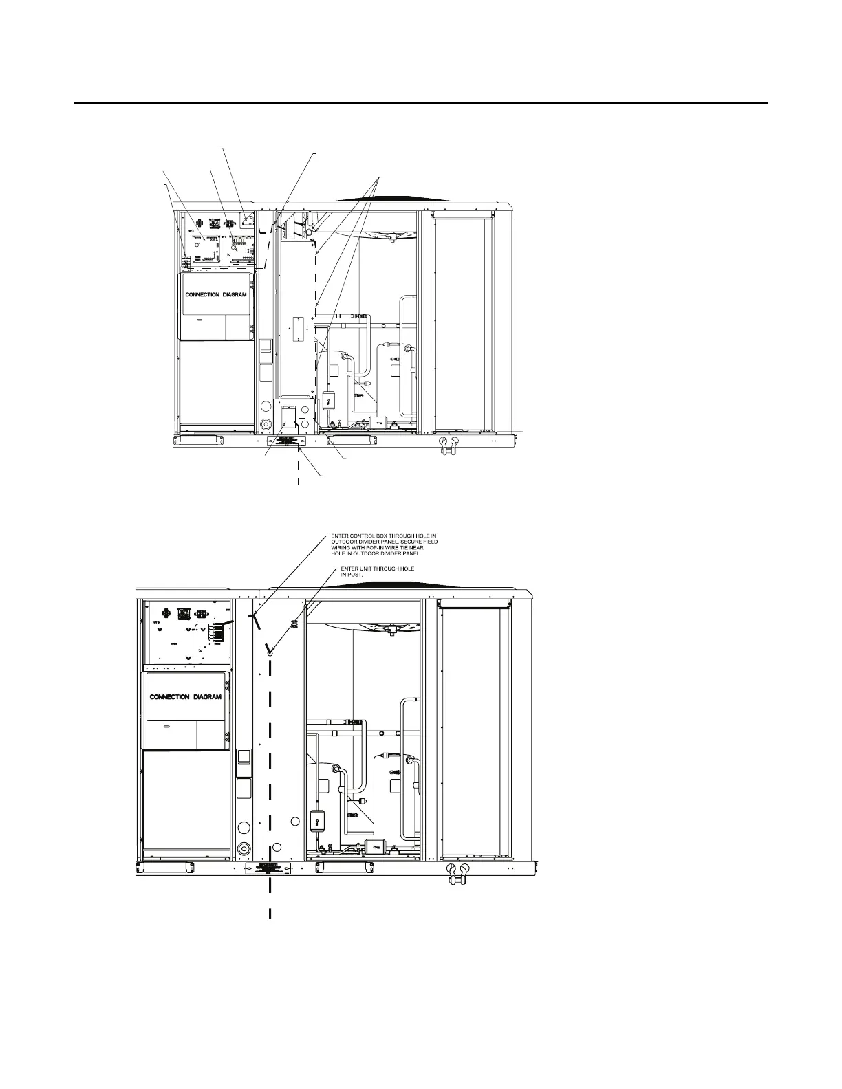 Figure 69. Electromechanical (without TBUE) control customer wire routing (10 ton high efficiency)