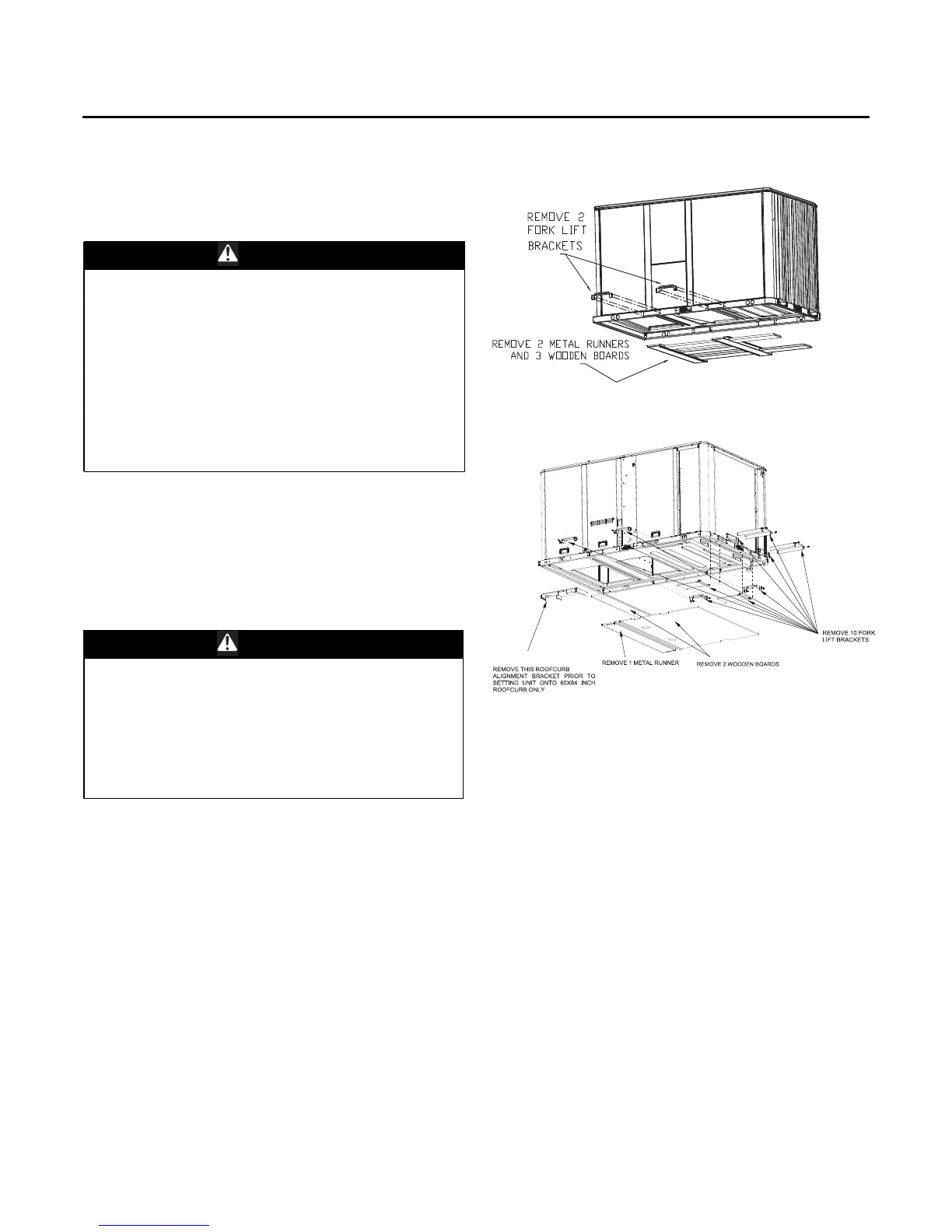 brackets in the unit base rail. Do not use cables, chains,