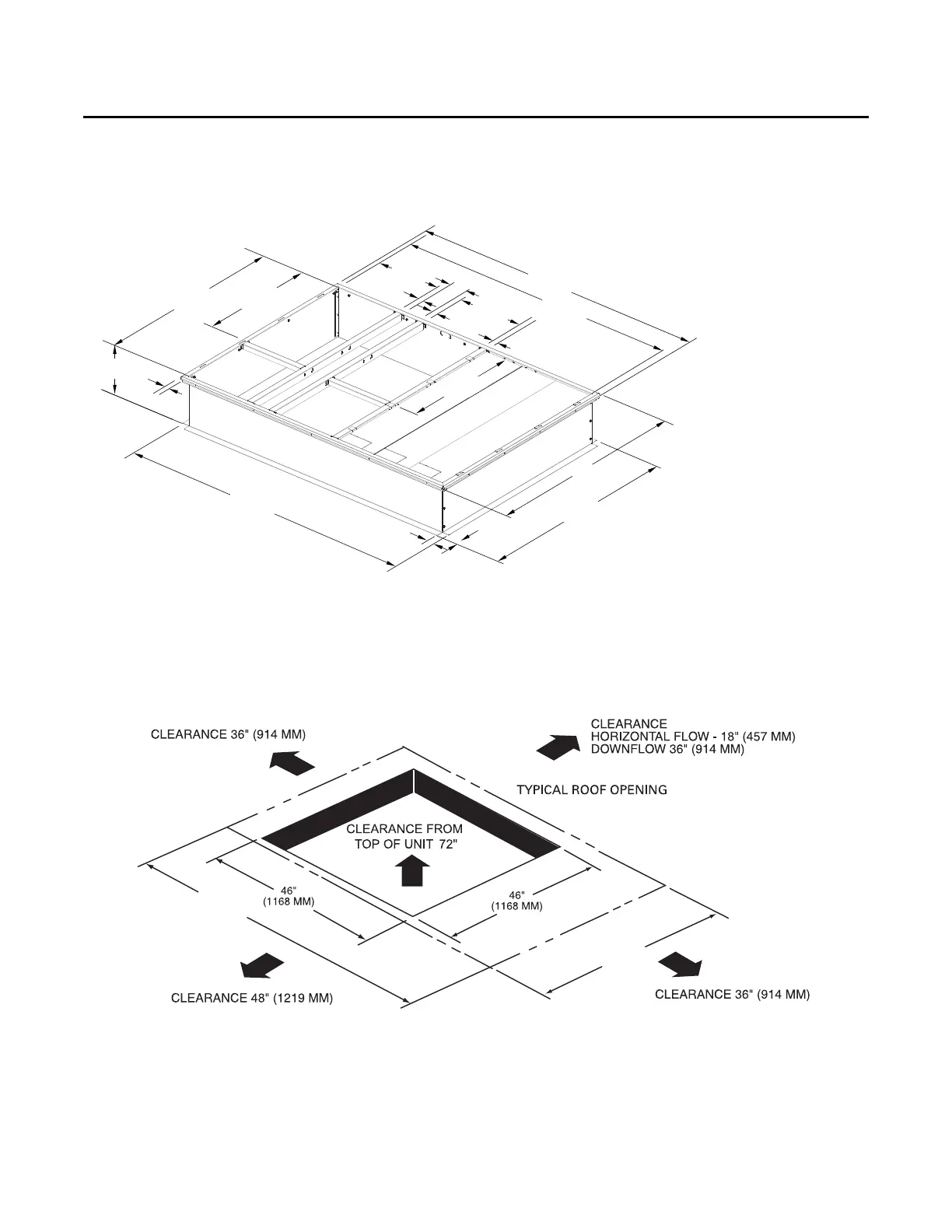 Figure 13. 7½ (dehumidification) - 10 ton high efficiency- unit clearance and roof opening