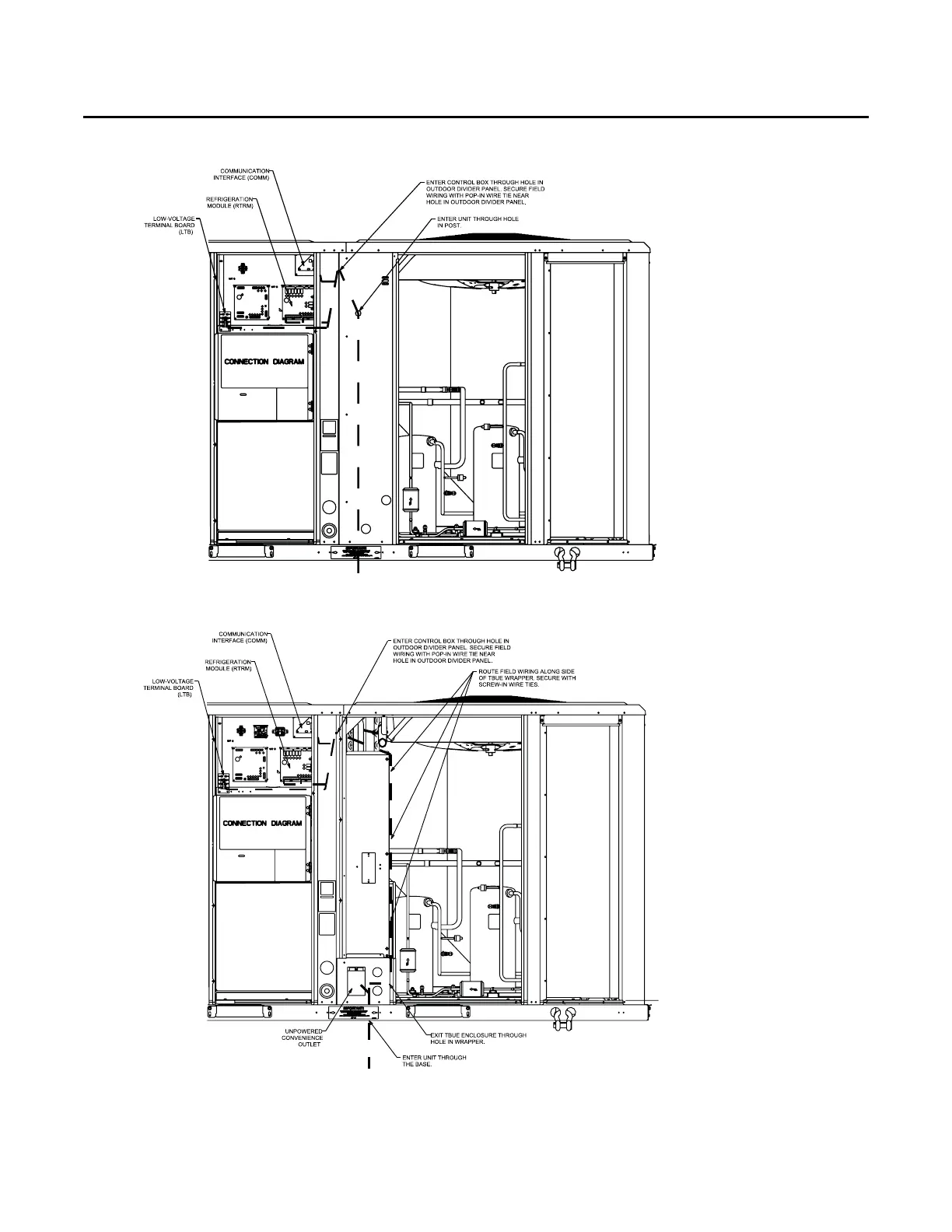 Figure 48. ReliaTel (with TBUE) control customer wire routing (7½ (dehumidification) - 10 ton high efficiency)