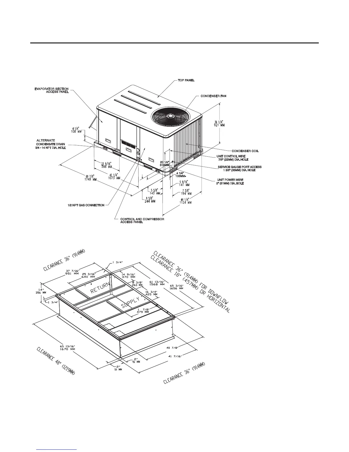 Figure 3. 3-5 ton standard efficiency, 3 ton high efficiency - roof curb