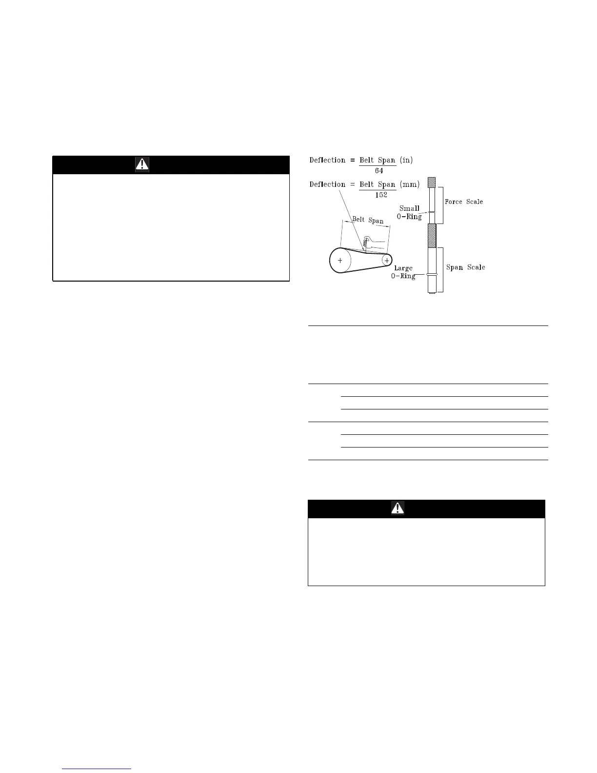 Note: Actual belt deflection “force” must not exceed the