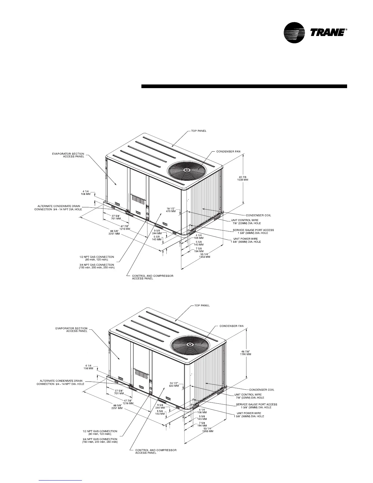 Trane YSC060 - Unit Dimensions Continued; Unit Dimensional Data YSC072 AD, YSC090 AD; Unit Dimensional Data YS102 AD, YSC120 AD
