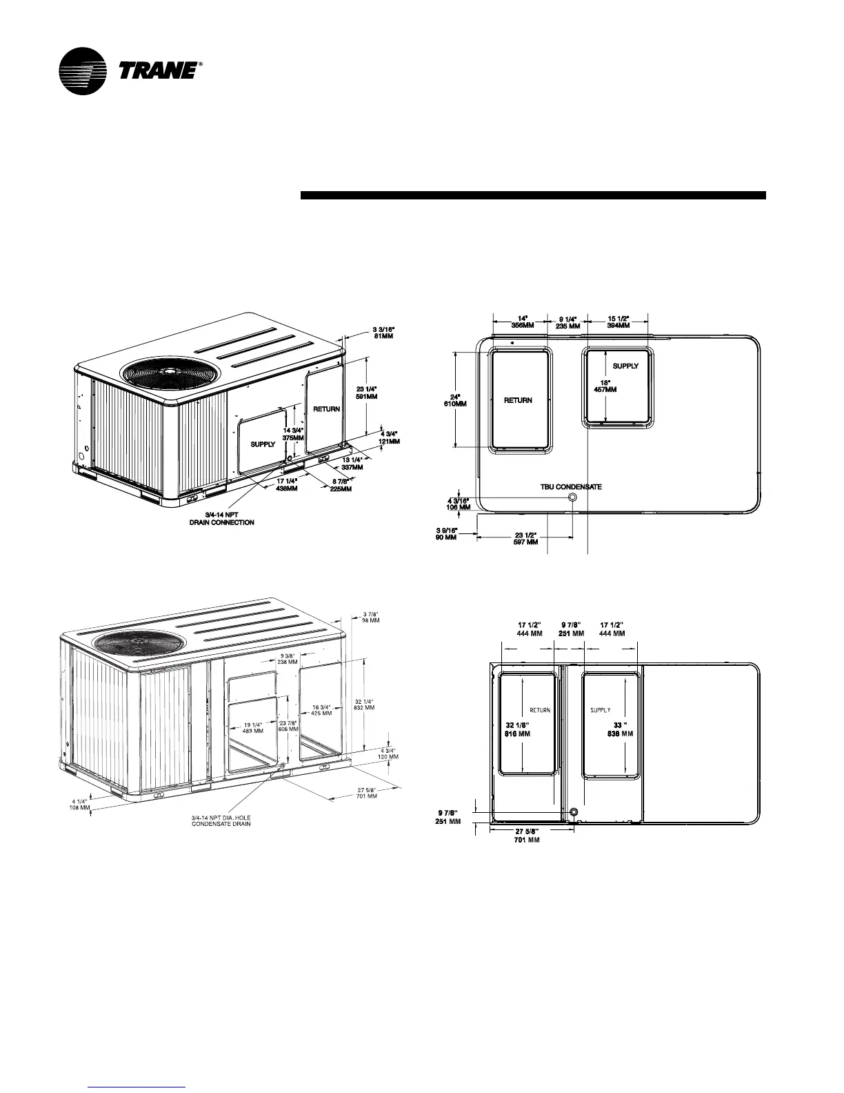 Trane YSC060 - Installation - Air Openings; Supply and Return Air Openings