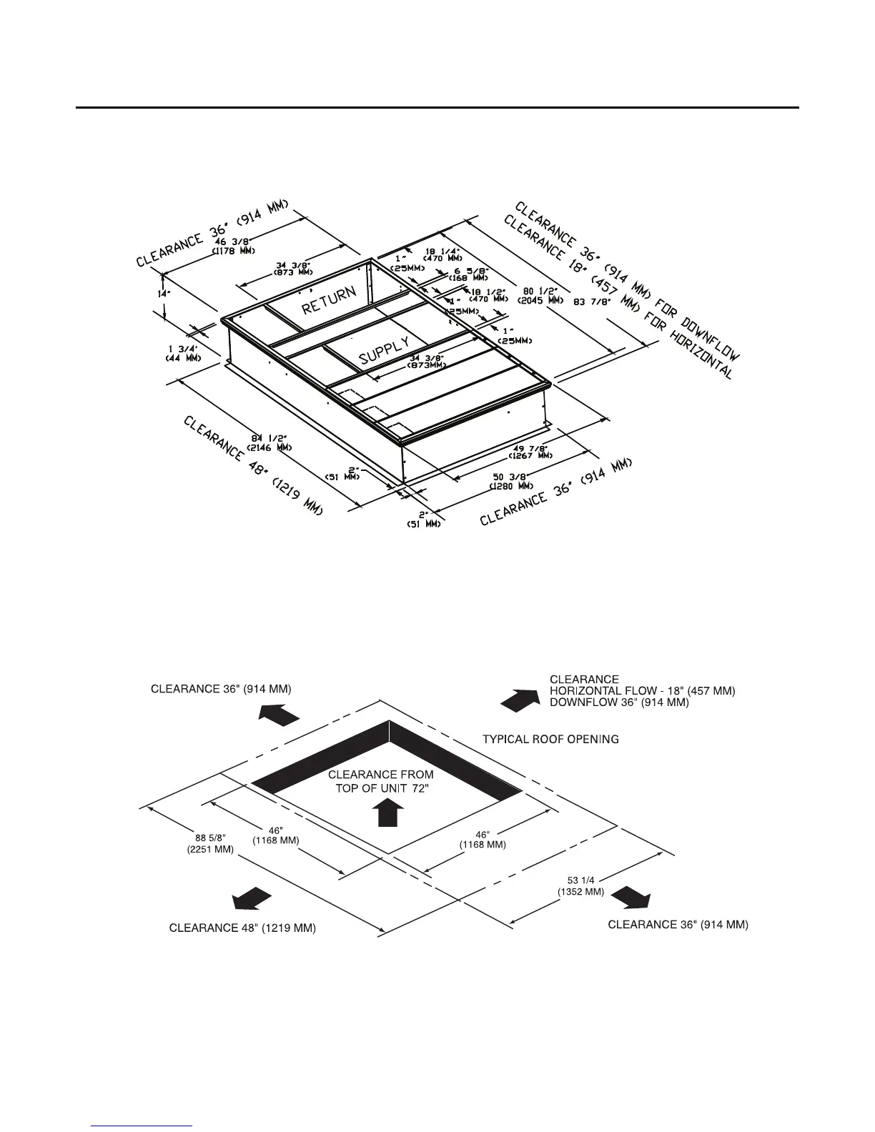 Figure 7. 6, tons standard efficiency - unit clearance and roof opening