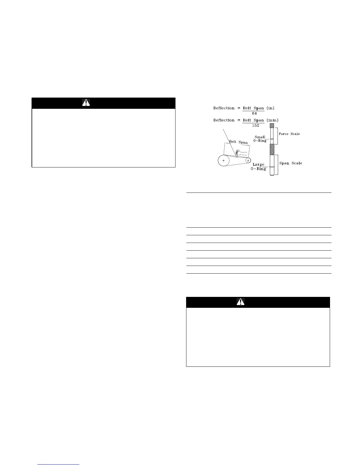 Note: Actual belt deflection “force” must not exceed the