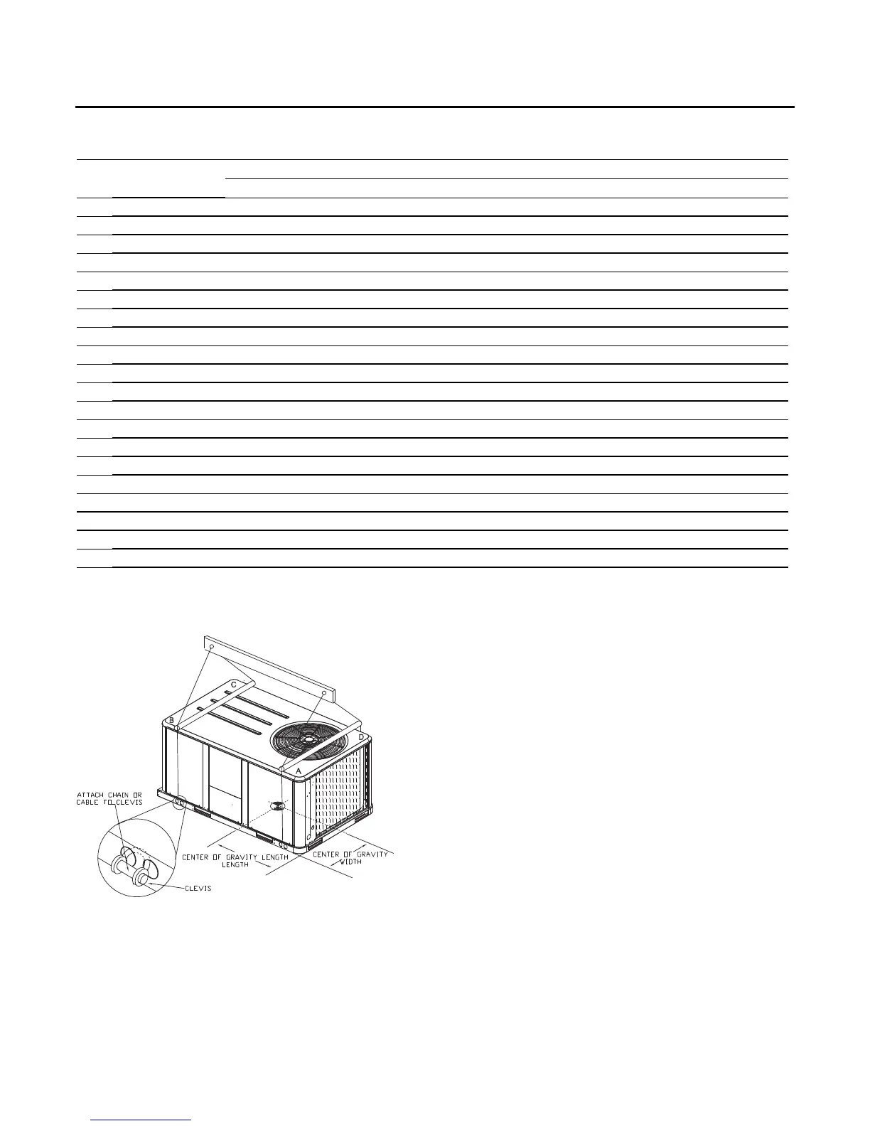 Table 1. Maximum unit & corner weights (lbs) and center of gravity dimensions (in.) - gas/electric models