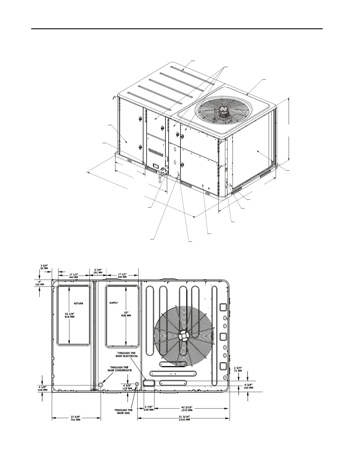 Figure 11. 12.5 tons standard efficiency downflow airflow supply/return, through-the-base utilities