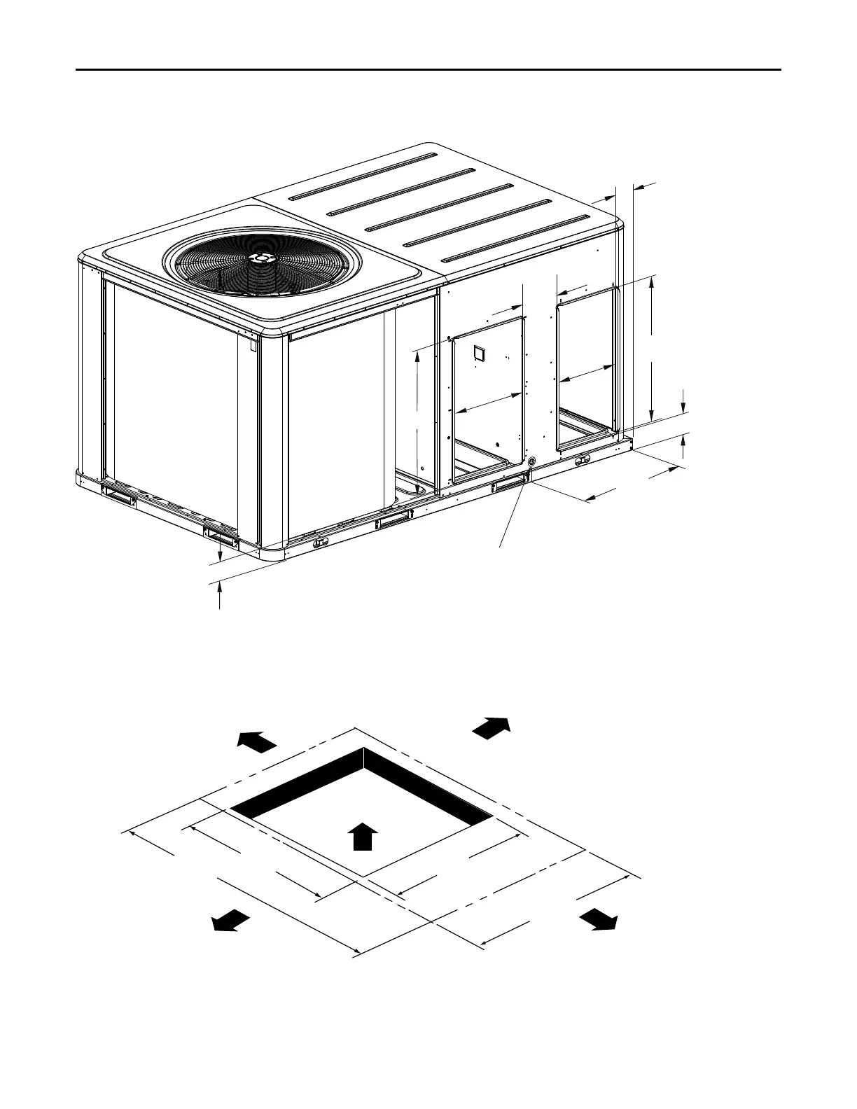 Figure 13. 12.5 tons standard efficiency unit clearance and roof opening