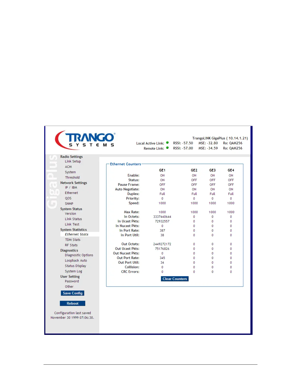 Figure 47 Ethernet Statistics Page