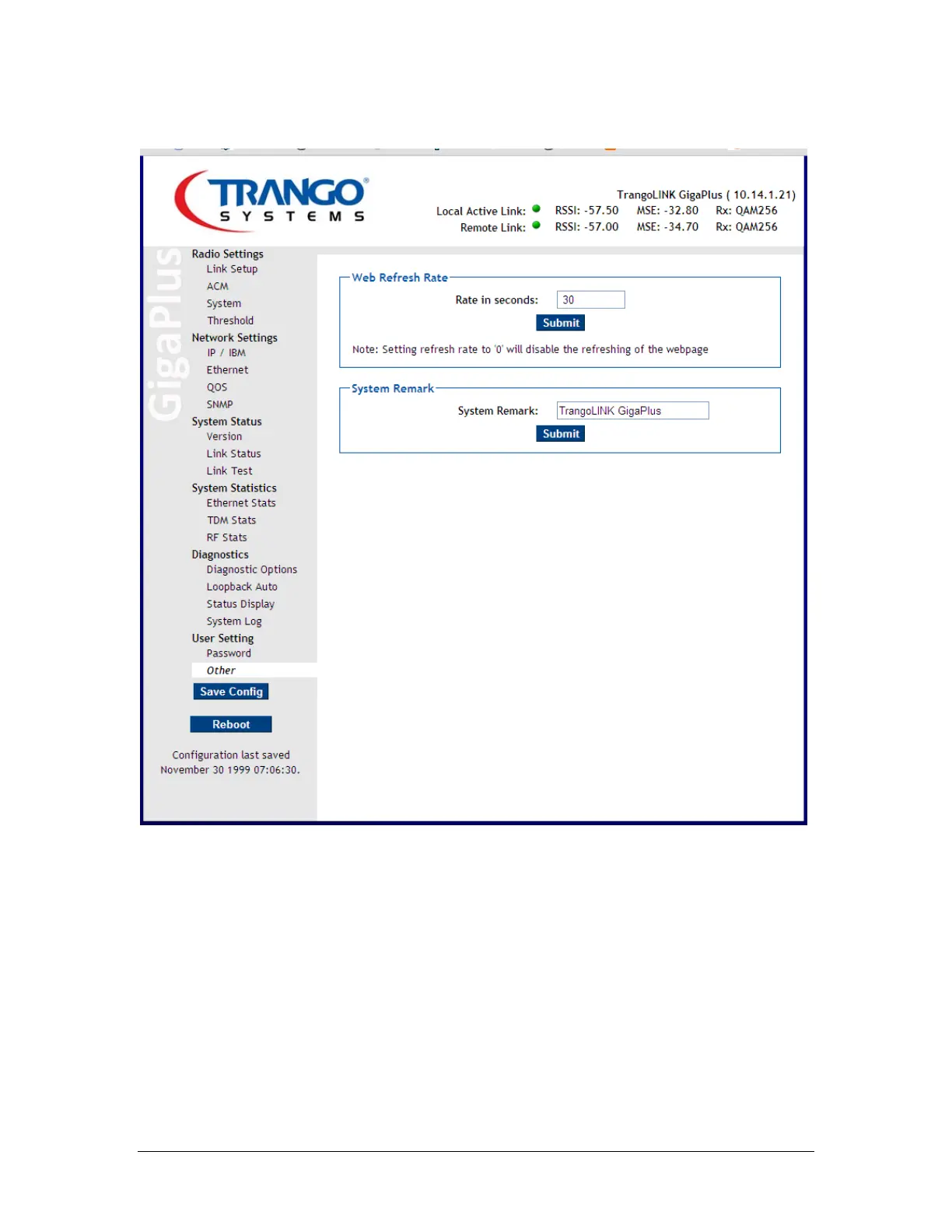 Trango Systems TrangoLINK GigaPlus - Figure 57 Other Settings