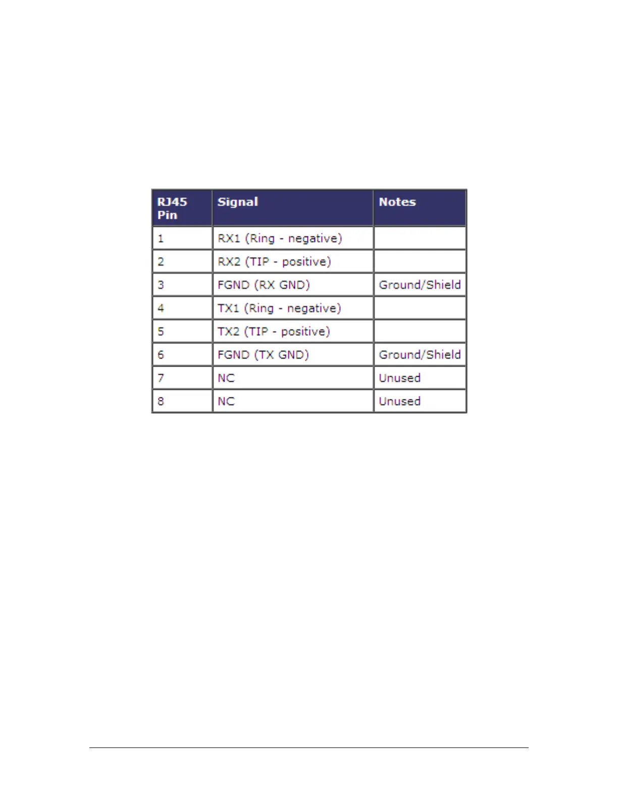 The Figure below show the cable pin-outs for T1/E1 cabling to interface to the RJ45