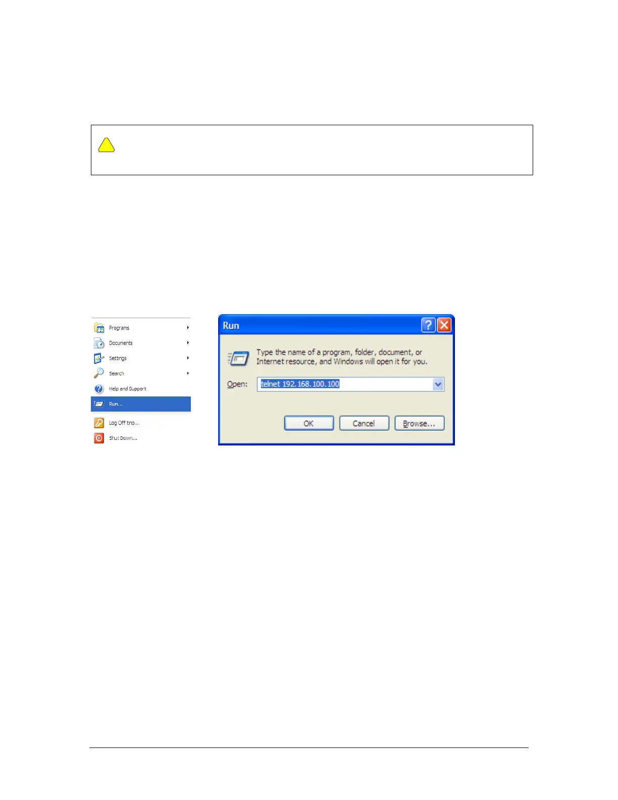 2) Telnet into the radio by Clicking on Start menu then RUN. The figures use the