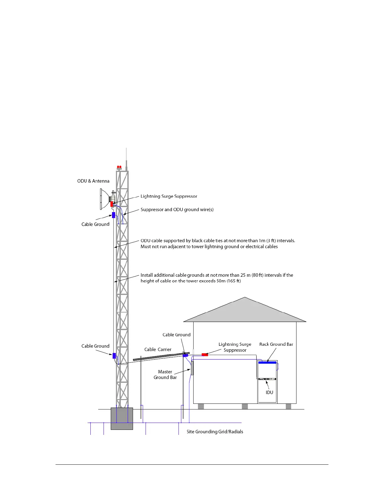 Grounding of the IF cable should be done at the base of the tower and near the ODU