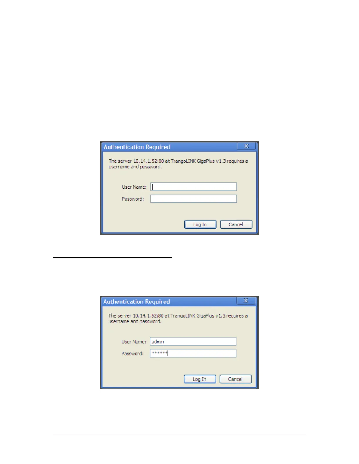 Figure 33). Enter the default user name and password (user: admin, password: trango)
