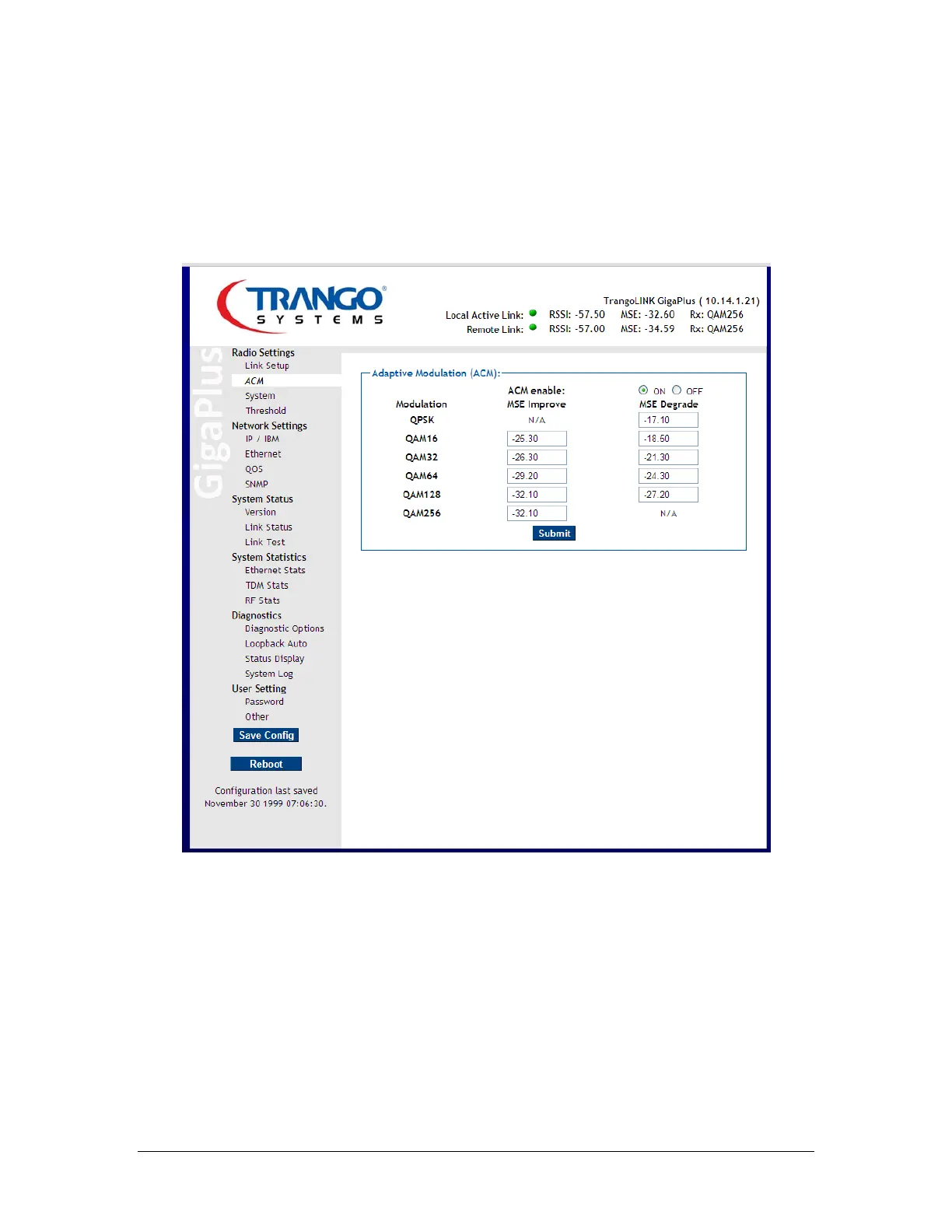 Enabling ACM permits configuration of the MSE Improve and Degrade thresholds. It is