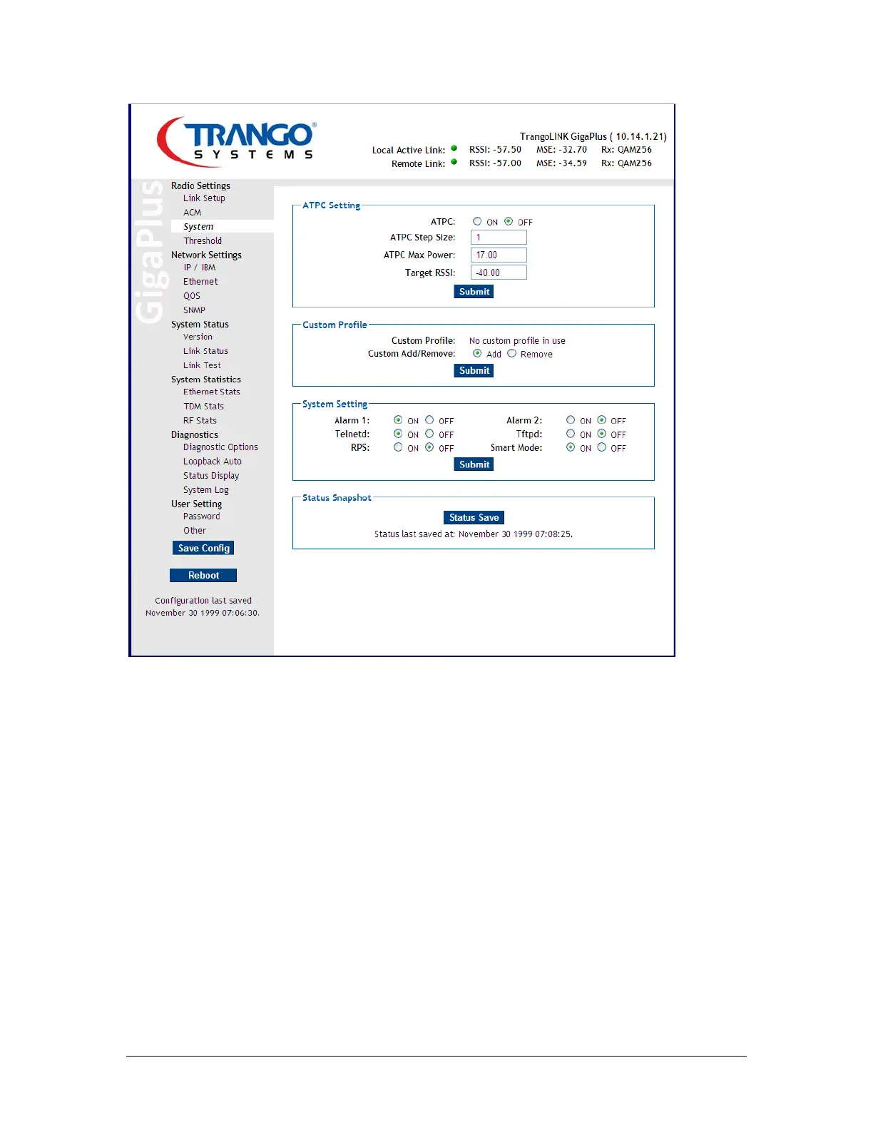 Trango Systems TrangoLINK GigaPlus - Figure 39 ATPC Setup; RPS;Telnetd; Tftpd;Alarms