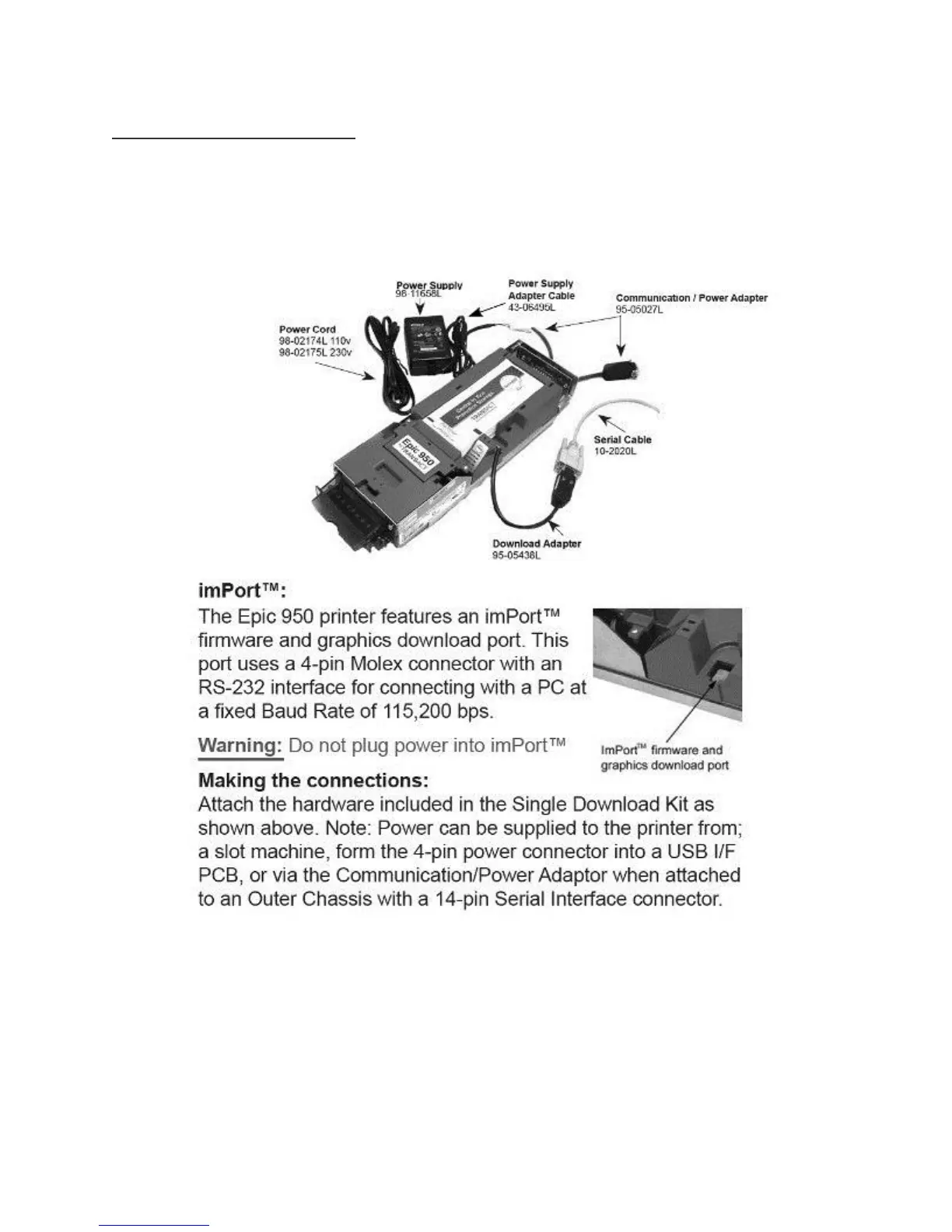 To download printer firmware into an Epic 950 printer requires some additional hardware available for purchase from