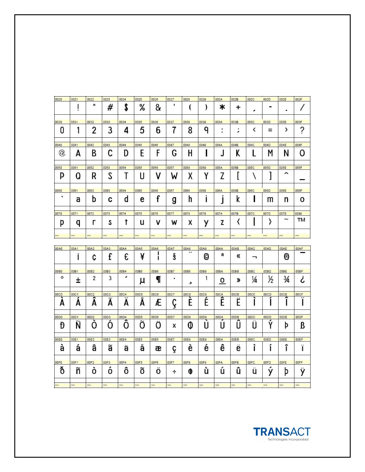 Supported Printable Characters