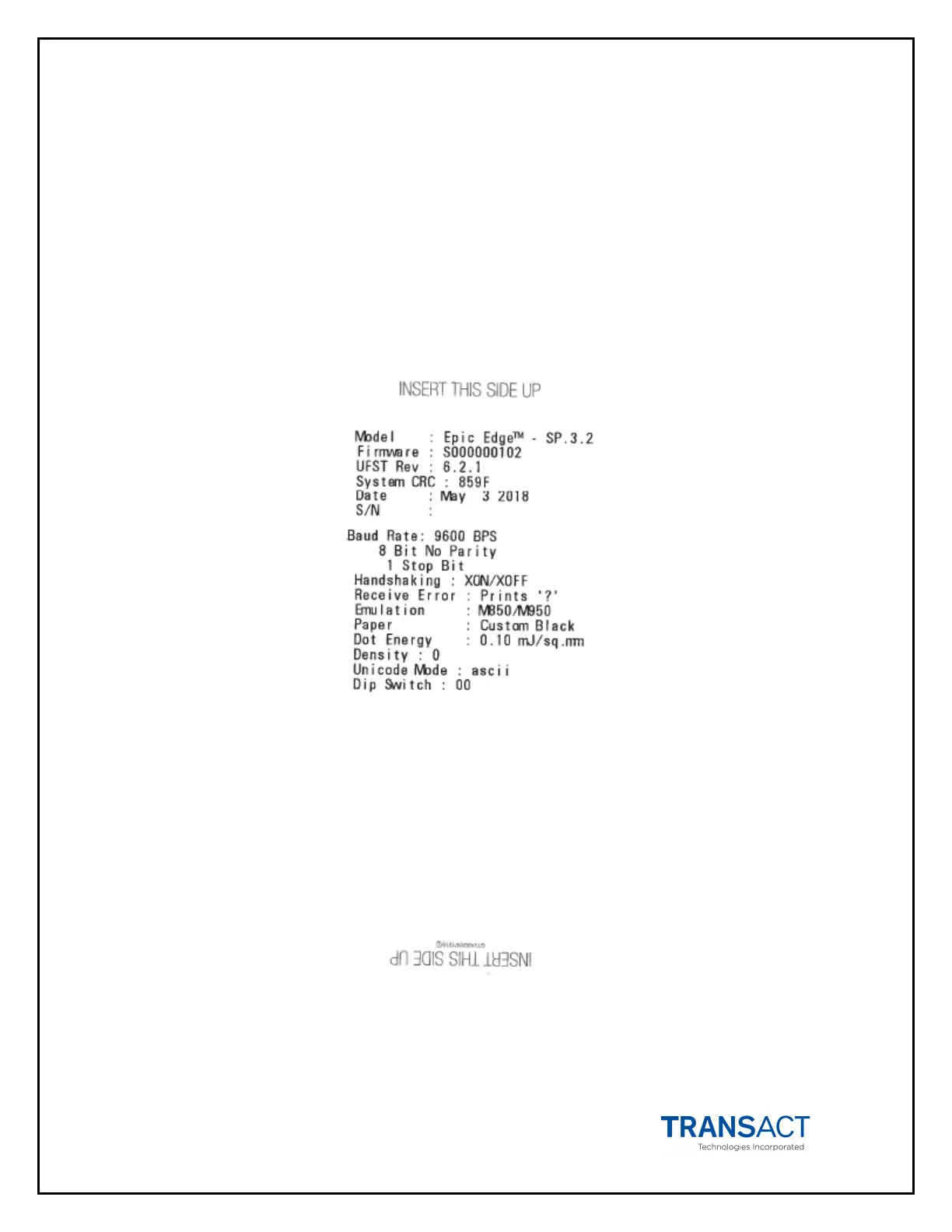 The Epic Edge™ printer has the ability to print a pre-defined self-test ticket, to test the