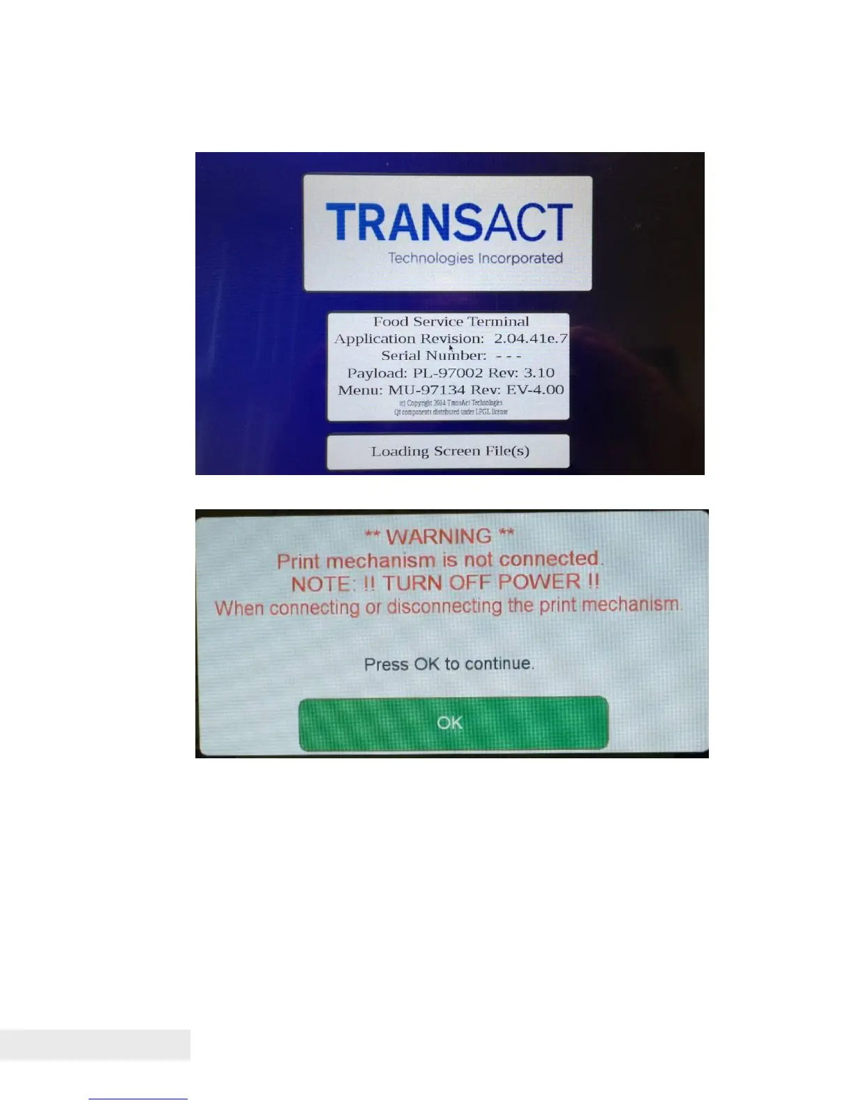 A startup screen is displayed while the unit is powering up. In the event that at