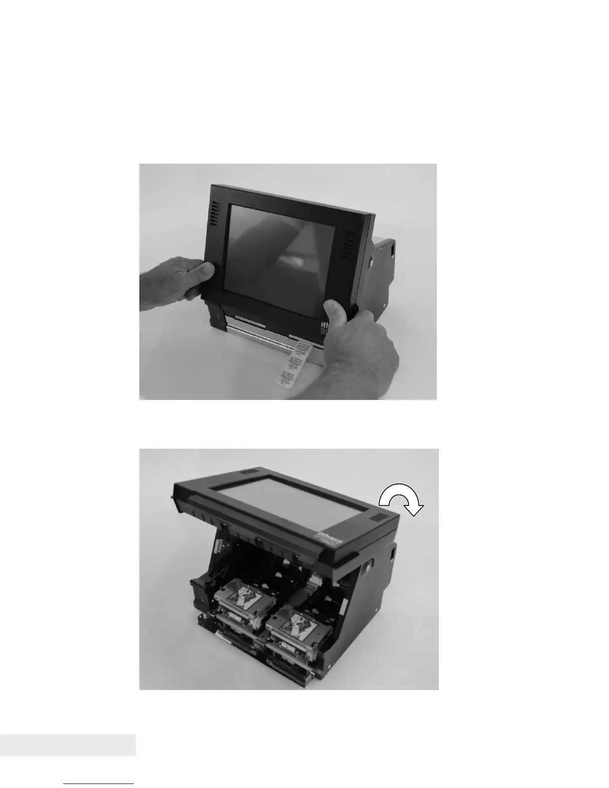 1. Grasp the sides of the display, and rotate it toward the rear of the terminal.