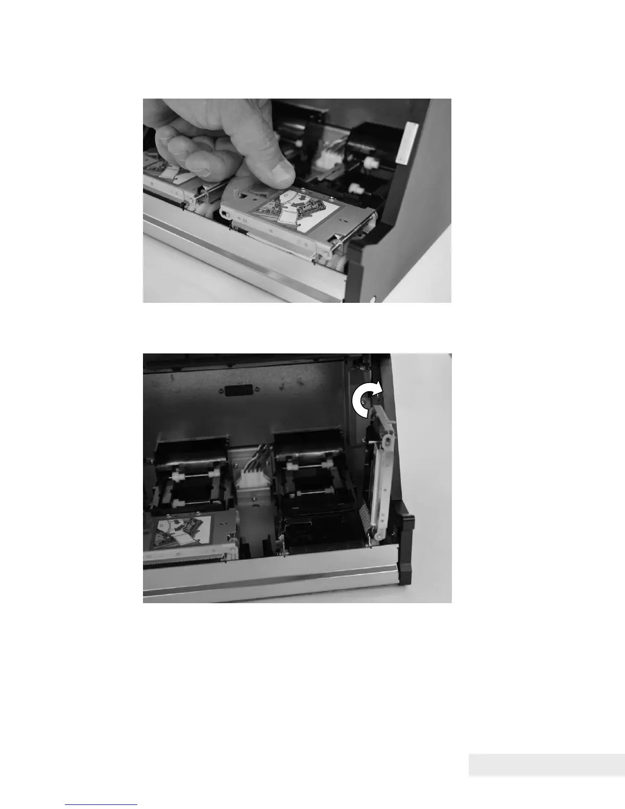 4. Rotate the printer mechanism cover to the open position as shown