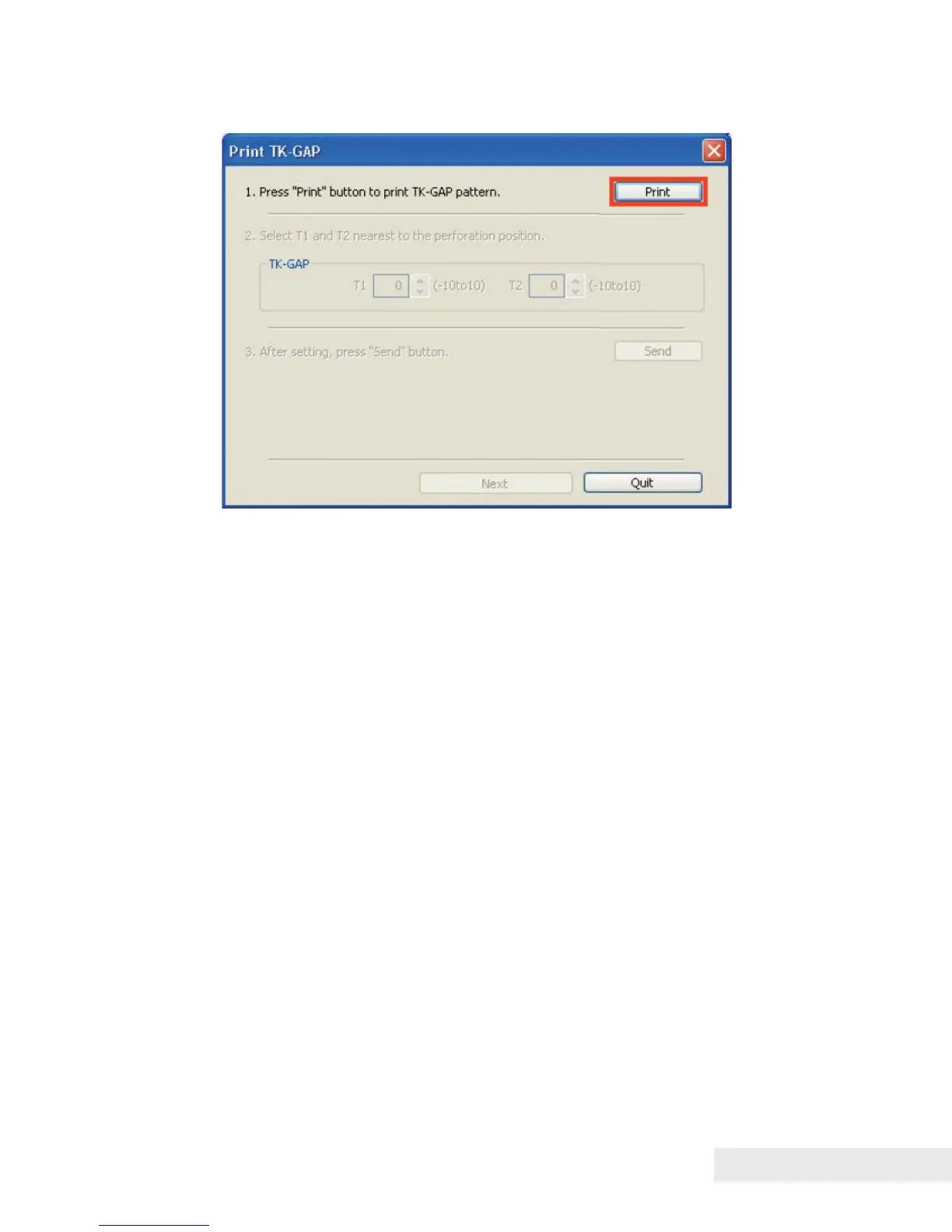 2) Click [Print] to print the TK-GAP adjustment pattern.