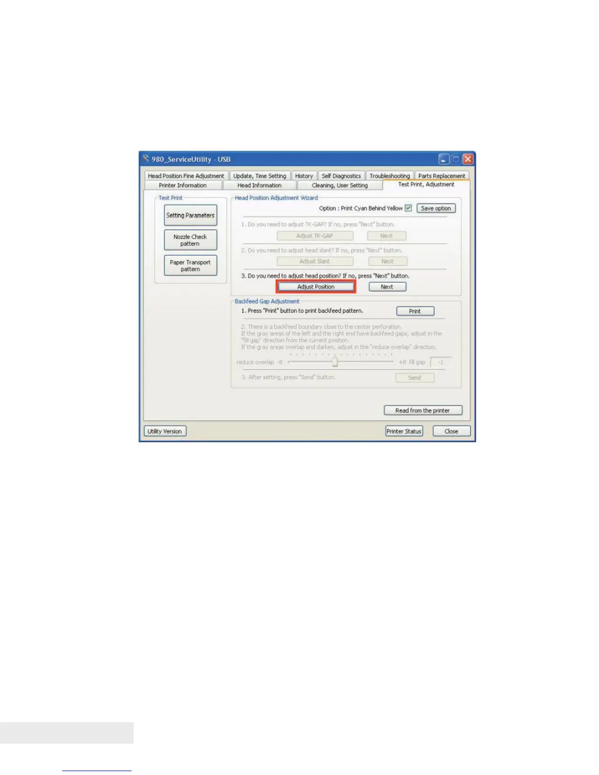 Open the [Test Print, Adjustment] tab and click [Adjust Position] to display the