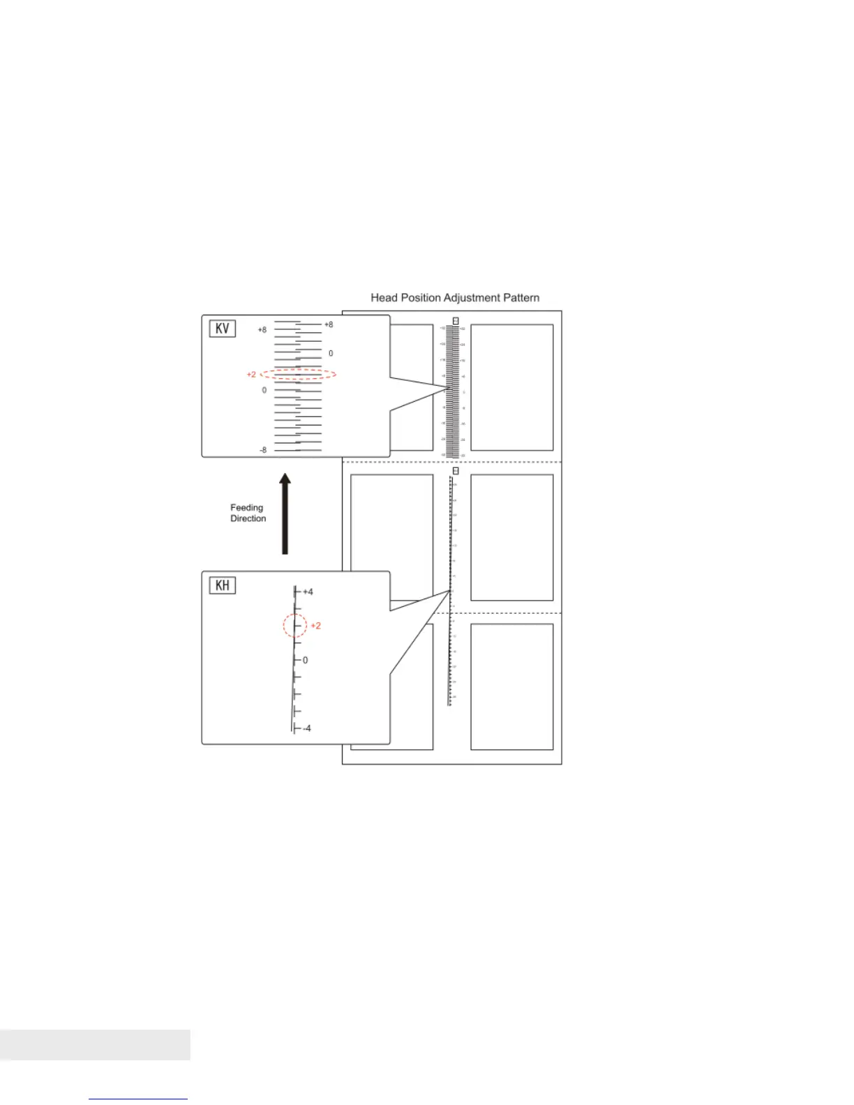 The relative print positions in the feeding direction can be examined in the