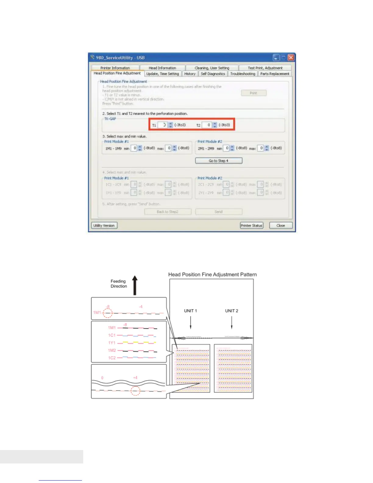 2) Enter the adjustment values in the TK-GAP adjustment value entry boxes.