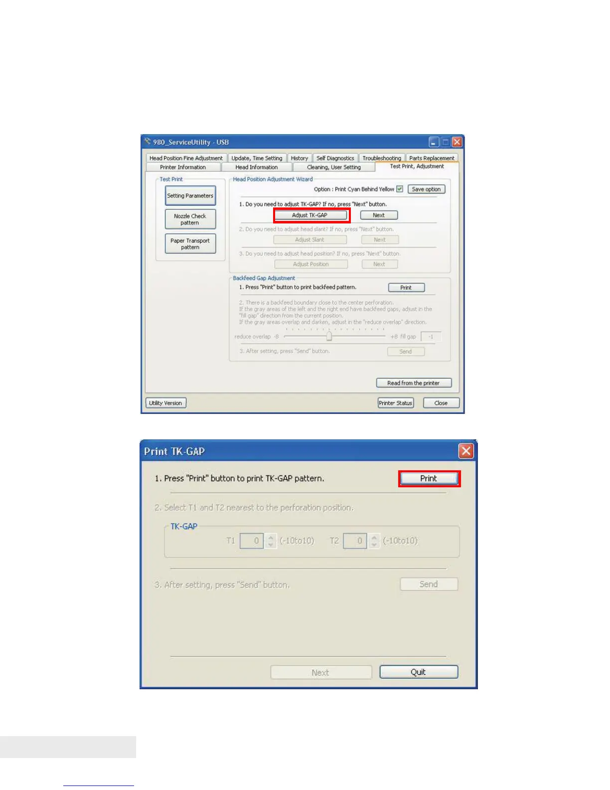 2) Click [Print] to print the TK-GAP adjustment pattern.